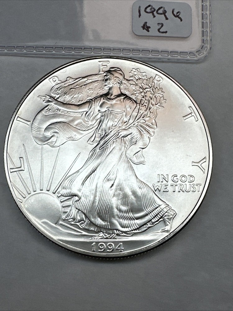Strike Type: Business Precious Metal Content per Unit: 1 oz Total Precious Metal Content: 1oz Country/Region of Manufacture: United States Fineness: 0.999 Coin: American Eagle Year: 1994 Certification: Uncertified Grade: Ungraded Brand/Mint: U.S. Mint Composition: Silver