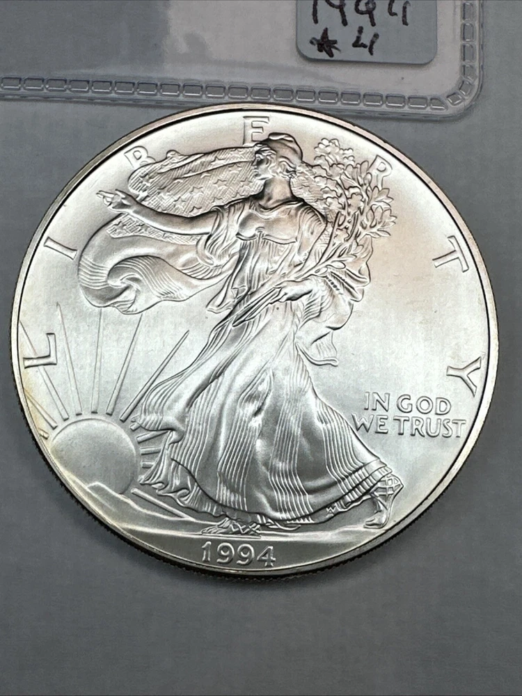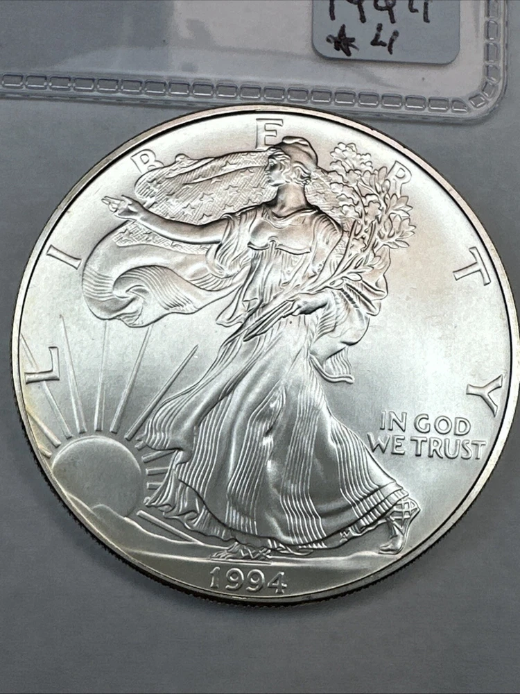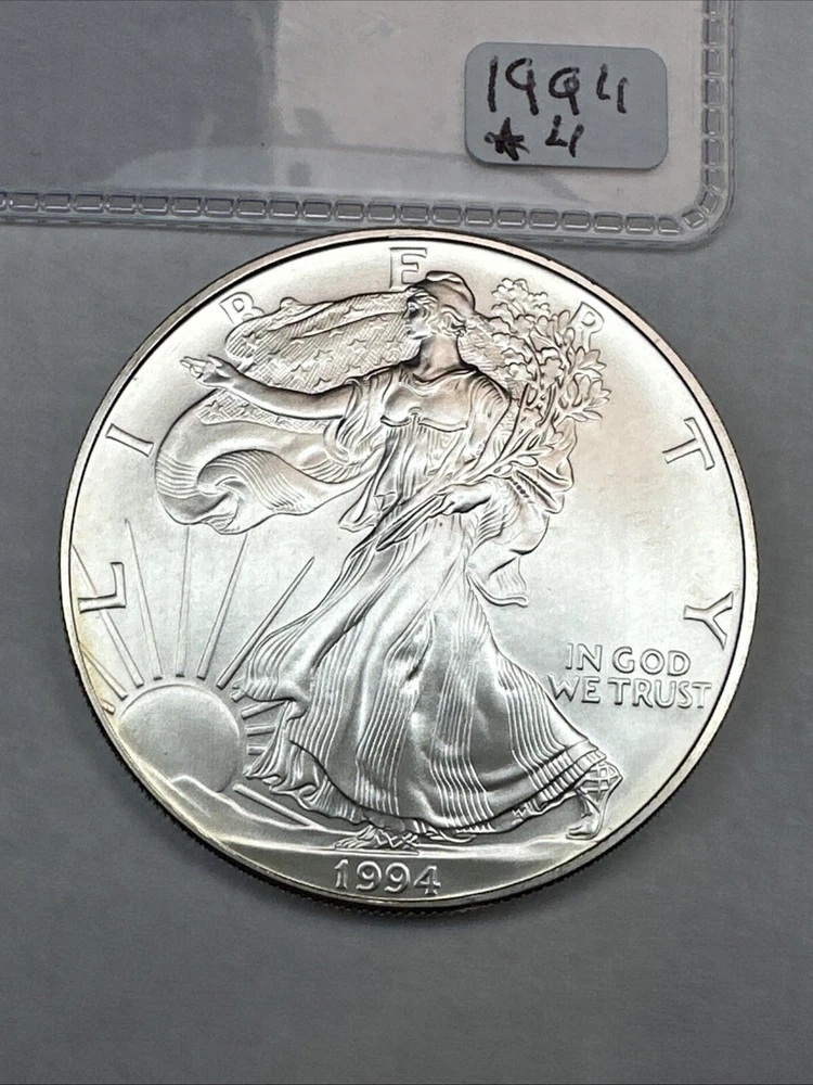 The product is a 1994 US American Silver Eagle coin, minted by the U.S. Mint. It contains 1 oz of .999 fine silver, making it a valuable addition to any collection. This particular coin is considered a key date, adding to its rarity and desirability among collectors. It is in uncirculated condition and comes uncertified.