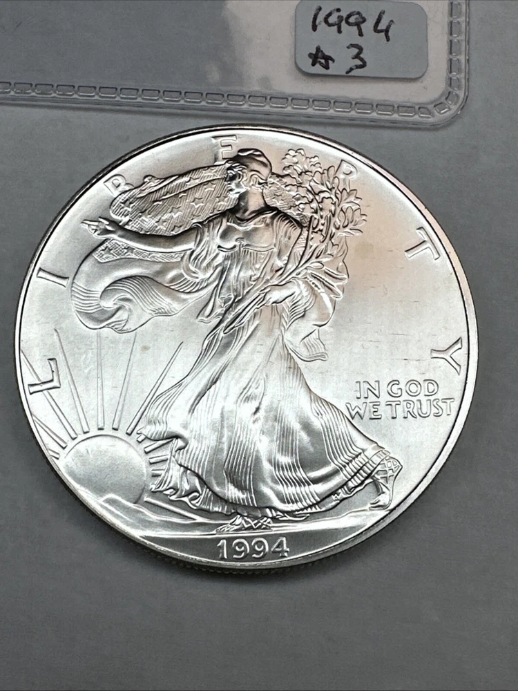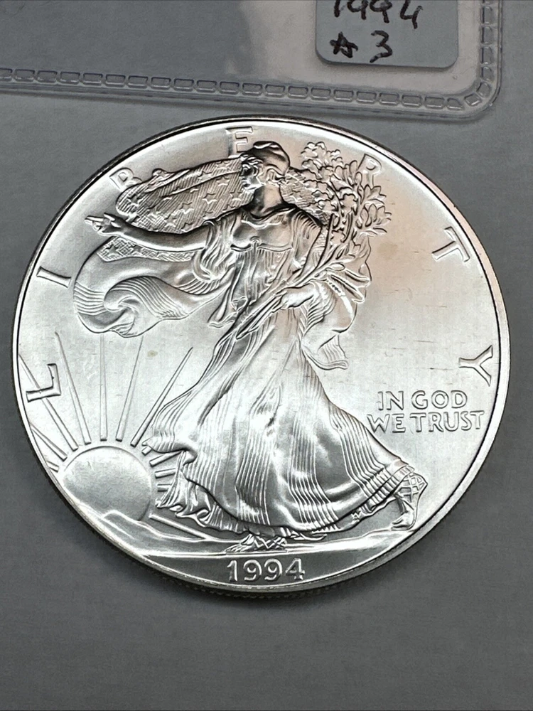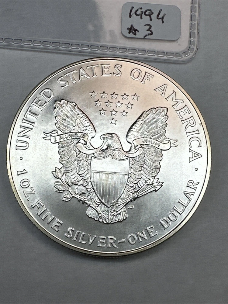 The product is a 1994 US American Silver Eagle coin, minted by the U.S. Mint. It contains 1 oz of .999 fine silver, making it a valuable addition to any collection. This particular coin is considered a key date, adding to its rarity and desirability among collectors. It is in uncirculated condition and comes uncertified.