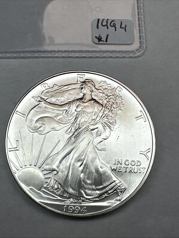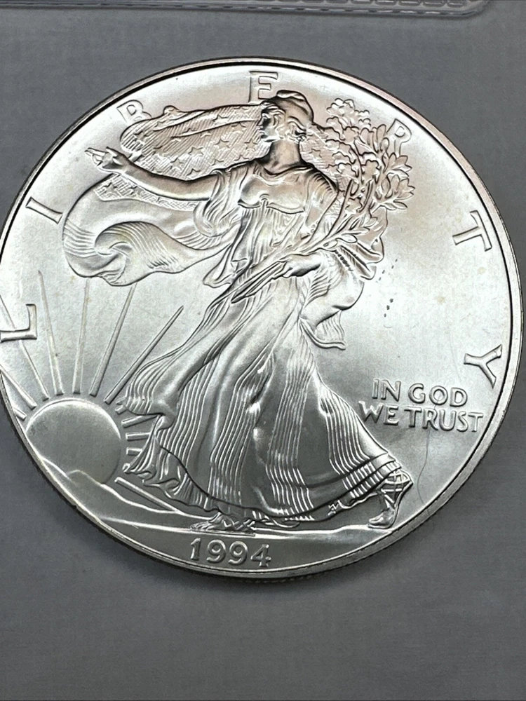 The product is a 1994 US American Silver Eagle coin, minted by the U.S. Mint. It contains 1 oz of .999 fine silver, making it a valuable addition to any collection. This particular coin is considered a key date, adding to its rarity and desirability among collectors. It is in uncirculated condition and comes uncertified.