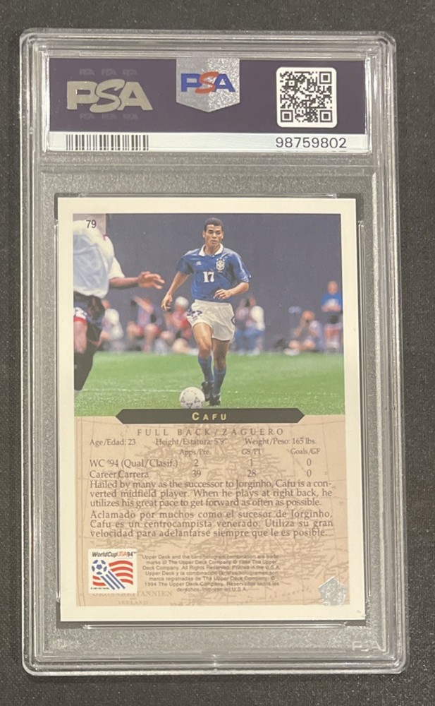 1994 Upper Deck World Cup Soccer #79 Cafu PSA 10 Gem Mint English Spanish