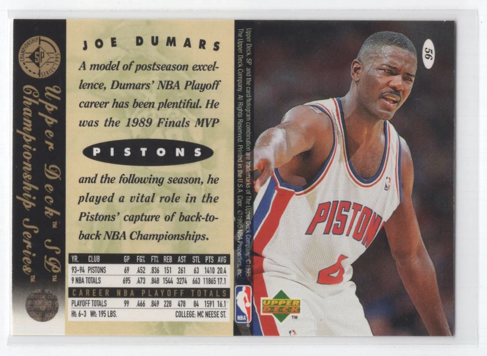 About Me Other Listings Feedback Add to Favorites Contact Me Striking Cards 901 1994-95 SP Championship Joe Dumars Detroit Pistons #56 No stock photo / These are real scans or pictures Details Description: Joe Dumars Category: Basketball Year: 1994 Product: SP Championship Team: Detroit Pistons Card Number: 56 Dimensions: 3½" x 2½" SKU: BK B0001 R01 J (256) Listing By Kronocard trading cards software v2.7.0.1
