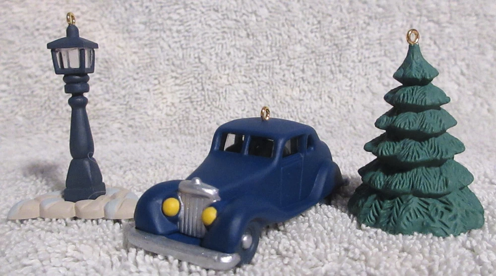 Hallmark Keepsake Ornament Nostalgic Houses and Shops Accessories for Collector's Series Set of 3 Ornaments is new in original box and comes from a smoke free home. The ornaments are a lamp post car and tree. If you have any other questions, please message me. Thank You for viewing and have a great day.