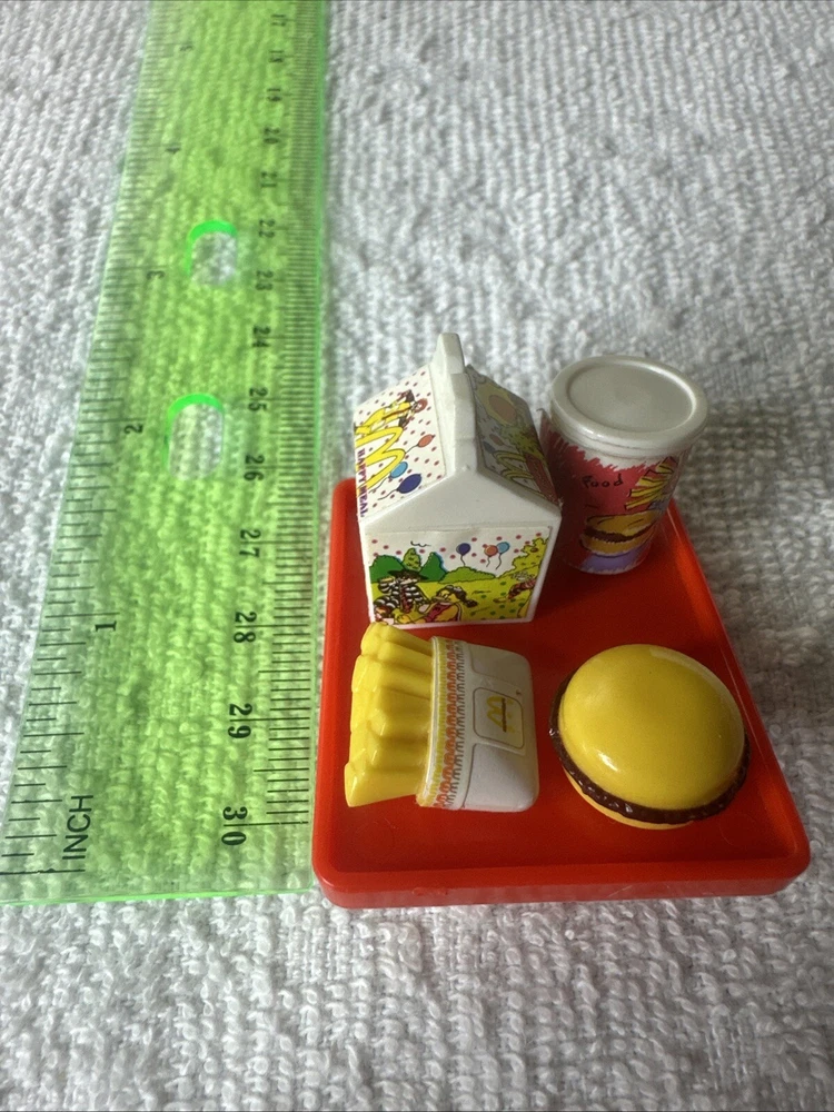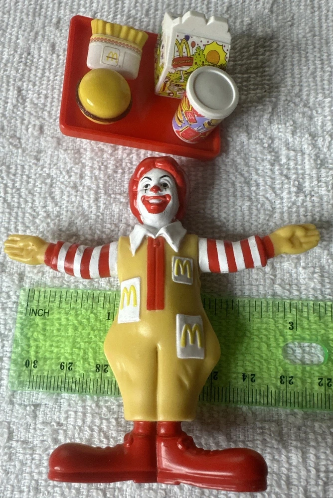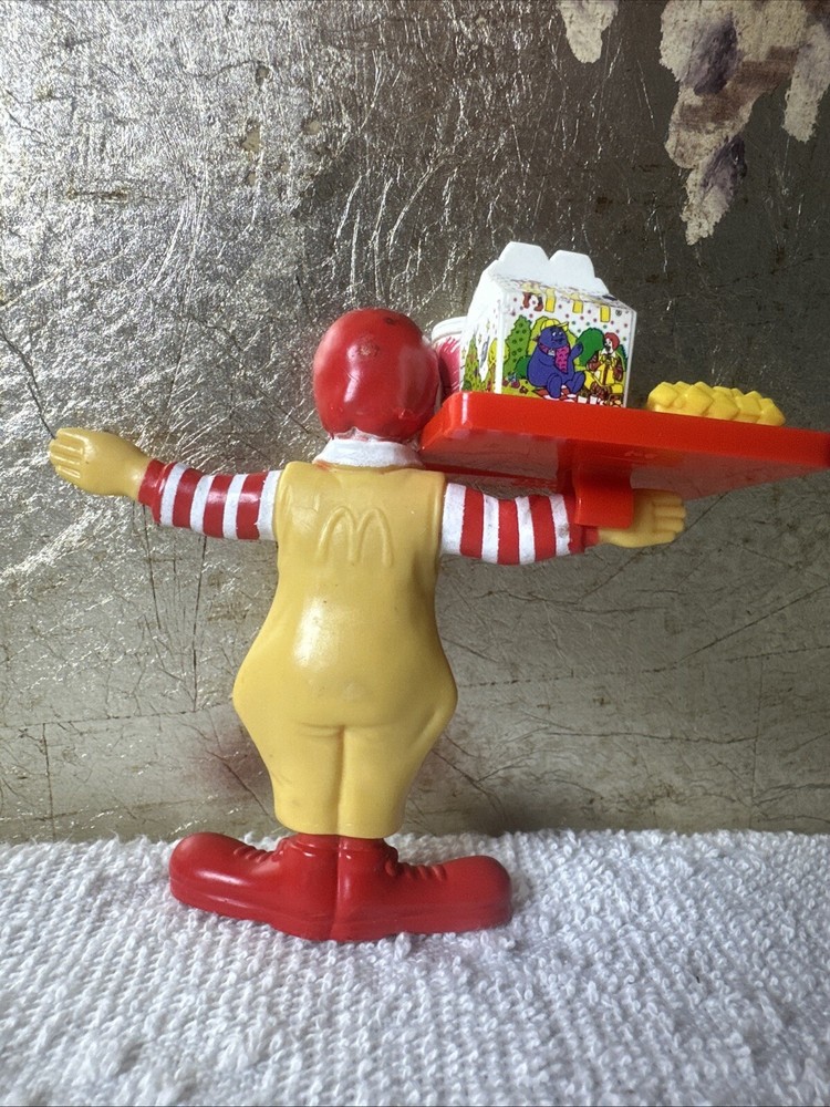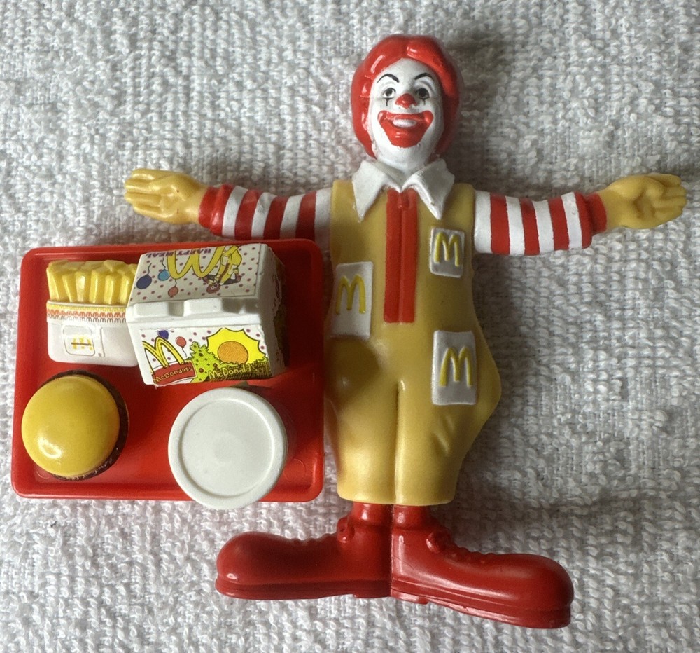 Collectible 1995 Ronald Mc Donald plastic Clown figure with happy meal tray fries, burger, soda. Pre-owned. No box, great condition. Sold as is. Shipped with USPS Ground Advantage.