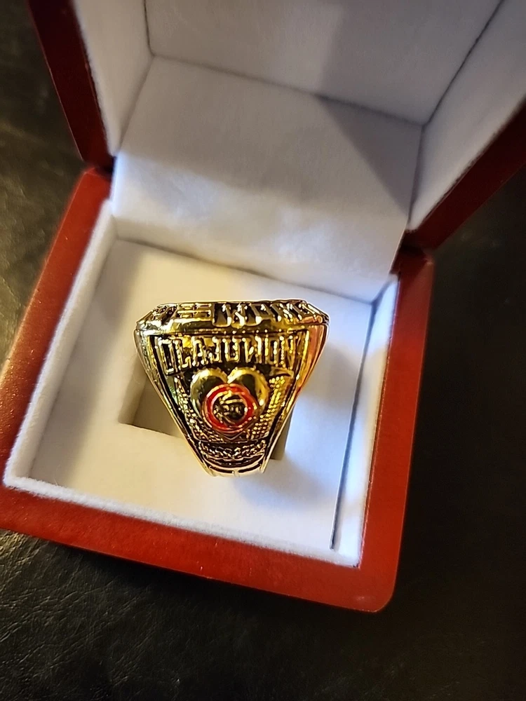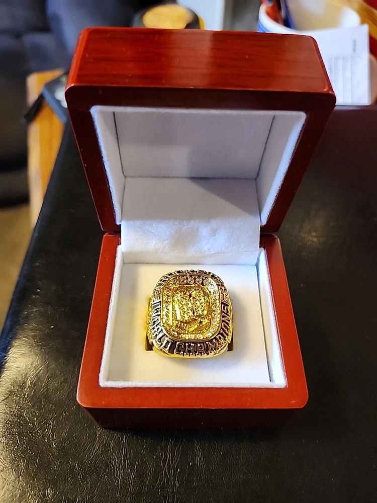This is a rare and valuable item for any Houston Rockets fan. Own a piece of history with this 1995 Championship Ring with Wooden Box. The ring is a beautiful representation of the team's victory in the National Basketball Association (NBA) and is perfect for avid collectors. With the Houston Rockets team name engraved on the ring, the item showcases the team's pride and success. It is a stunning piece of sports memorabilia that any basketball fan would love to add to their collection. Don't miss out on this amazing opportunity to own a piece of NBA history!
