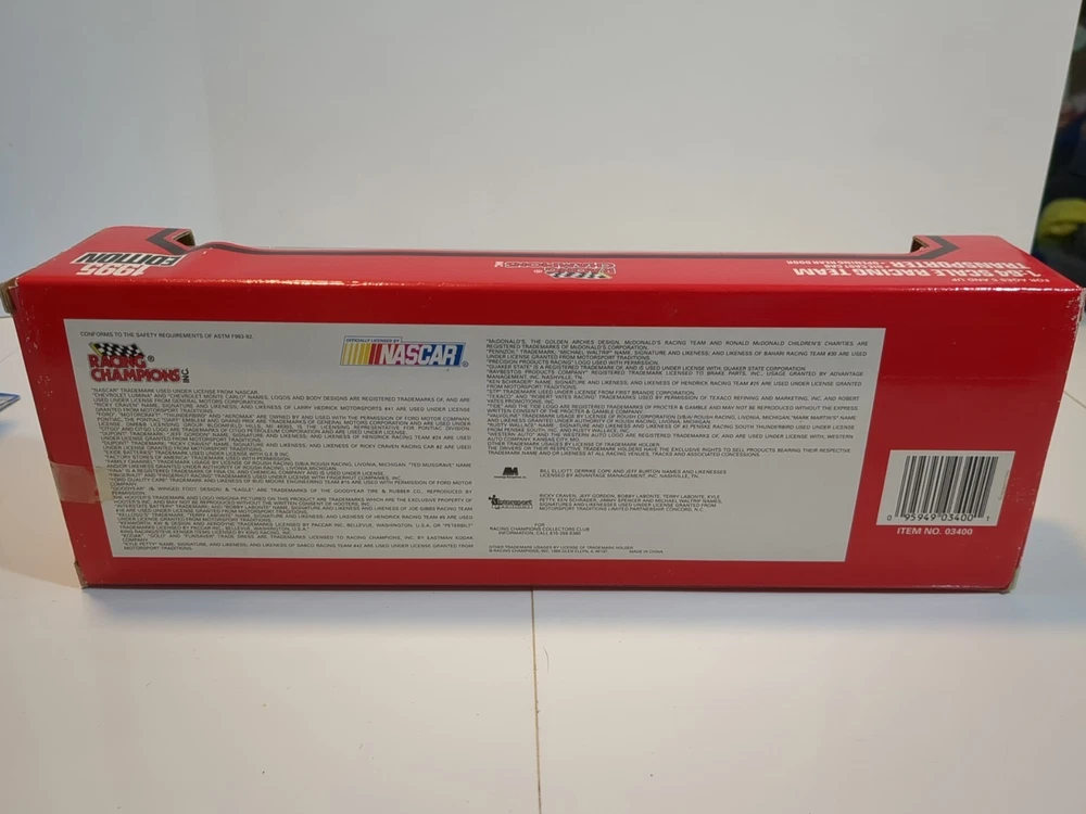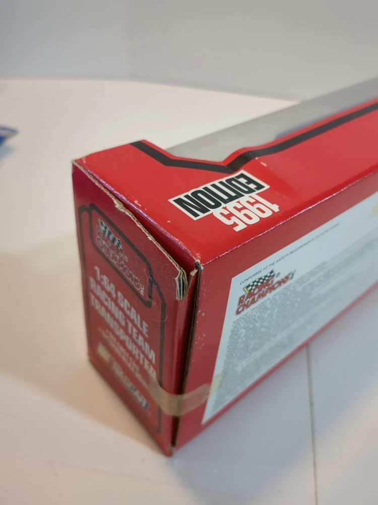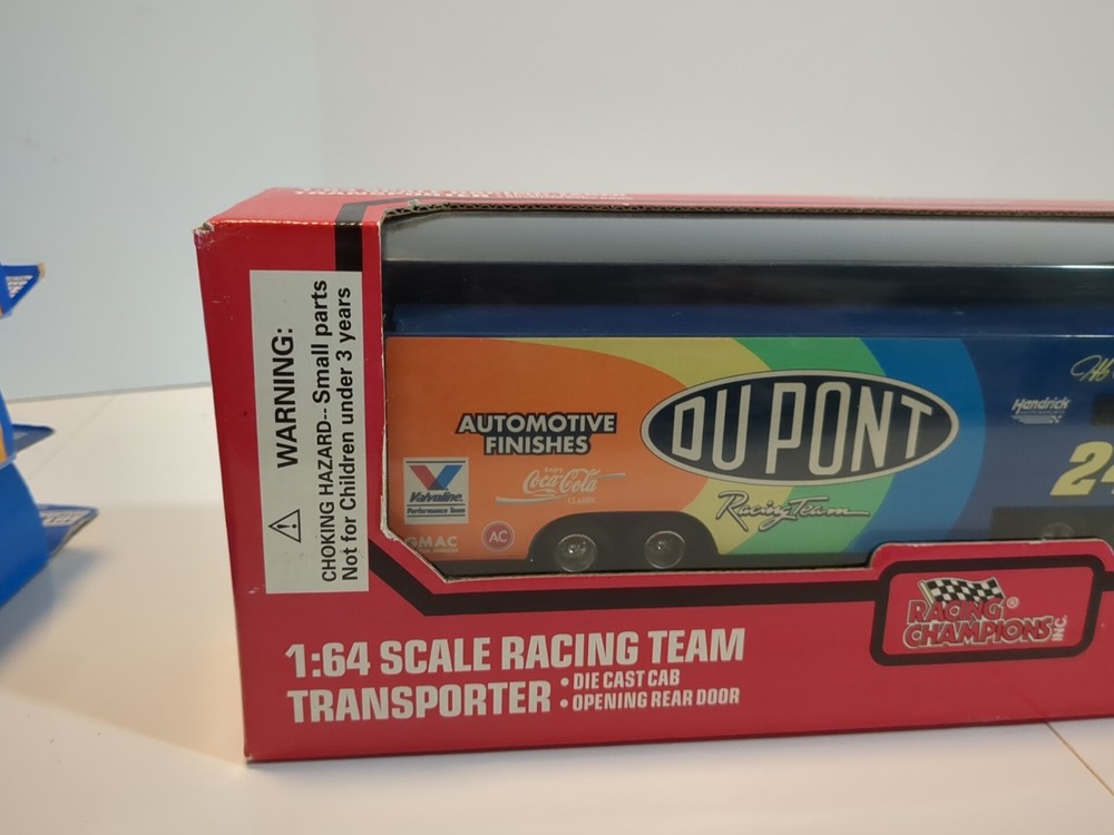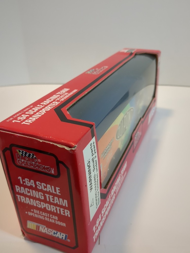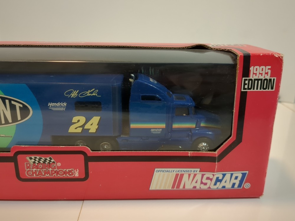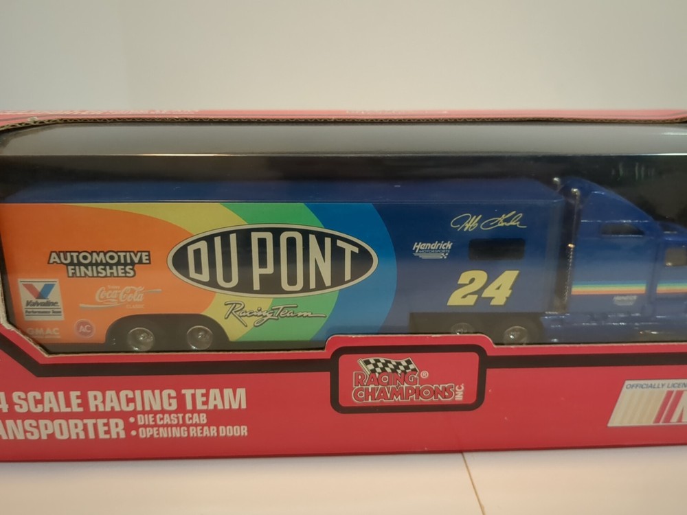 This 1:64 scale diecast toy car is a replica of the 1995 edition #24 Jeff Gordon Dupont Blue Transporter, a NASCAR racecar driven by Jeff Gordon. The multi-color car is made of diecast material and is part of the Racing Champions brand. The toy car is a great addition to any collection and is perfect for fans of NASCAR and Jeff Gordon. The toy car features intricate details such as the Chevrolet vehicle make and the NASCAR organization. The car is in excellent shape and is ready to be displayed or played with. This collectible item is a must-have for any NASCAR fan and would make a great gift for any car enthusiast. See pics for condition issues