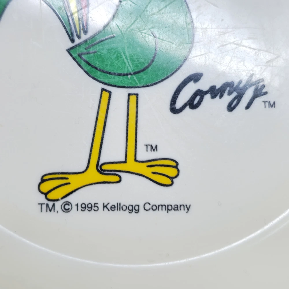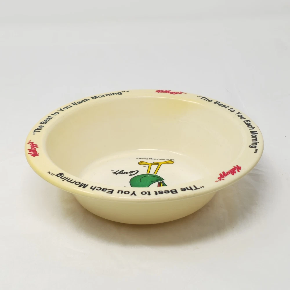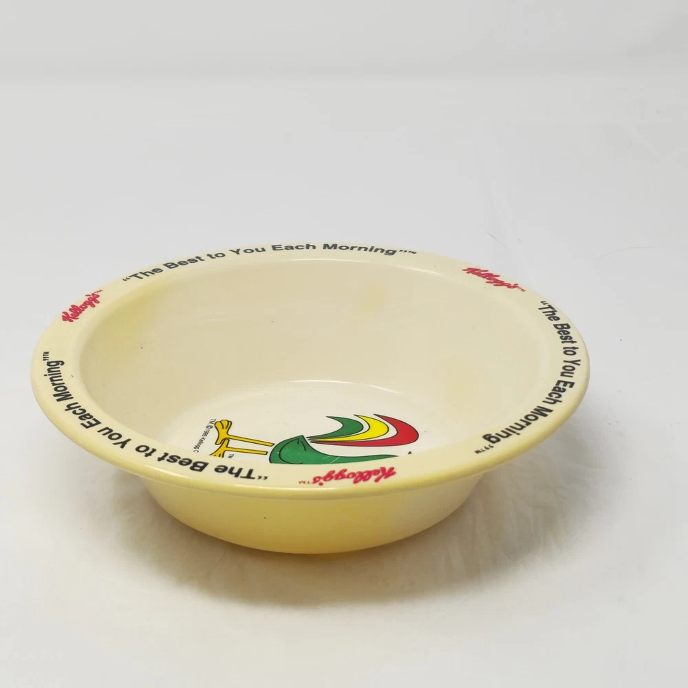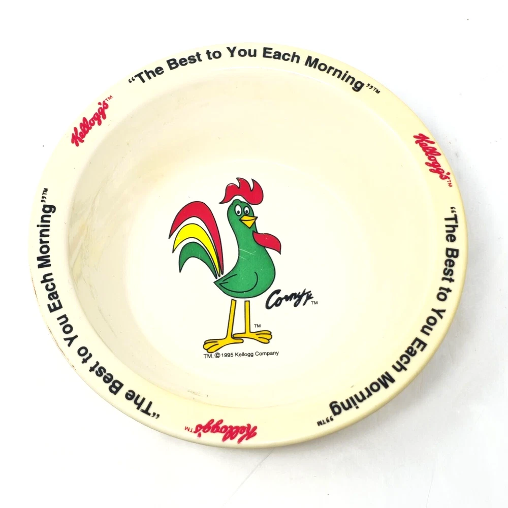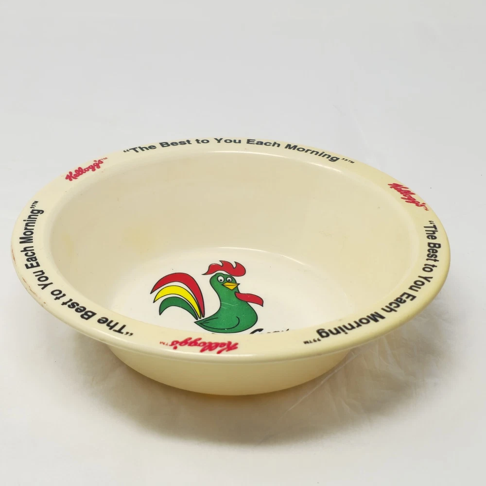 This 1995 Kellogg's Corn Flakes cereal bowl features Corney the Rooster and the slogan "The Best to You Each Morning." Made of durable plastic, the bowl shows light scratches and minor yellowing indicative of its vintage status but remains in good condition. Its cheerful design with vibrant graphics captures the essence of '90s Kellogg’s advertising, making it an ideal collectible for fans of retro cereal memorabilia or anyone looking to add a nostalgic piece to their kitchenware. 1995 Kellogg's Corn Flakes Cereal Bowl "Corney" - Vtg Collectible Kitchenware Condition: Used; the bowl shows some signs of wear such as light scratches and minor yellowing, typical of vintage plastic items but remains in good condition with vibrant graphics. Details: Year: 1995 Brand: Kellogg's Product: Corn Flakes Cereal Bowl Character: Corney Material: Plastic Color: Cream with multicolor graphics Features: "The Best to You Each Morning" slogan, Corney the Rooster design Ideal For: Collectors, fans of retro cereal memorabilia, Kellogg’s enthusiasts Size: Approximately 6.5 inches in diameter Key Features: Iconic 1995 Kellogg's branding featuring Corney the Rooster. Durable plastic construction, perfect for daily use or display. Bright and cheerful design that captures the essence of '90s Kellogg's marketing. Why Buy This Item? Own a piece of breakfast history with this 1995 Kellogg’s Corn Flakes cereal bowl. Featuring the cheerful Corney the Rooster, it's a must-have for collectors and fans of vintage cereal advertising. This bowl not only serves as a functional kitchen item but also a delightful nod to '90s pop culture. Visit My Store: Explore more vintage and collectible kitchenware in my eBay store: Kelly Vintage Market Shipping: Carefully packaged, shipped within 2 business days. Combined shipping available; contact me for a quote. mf