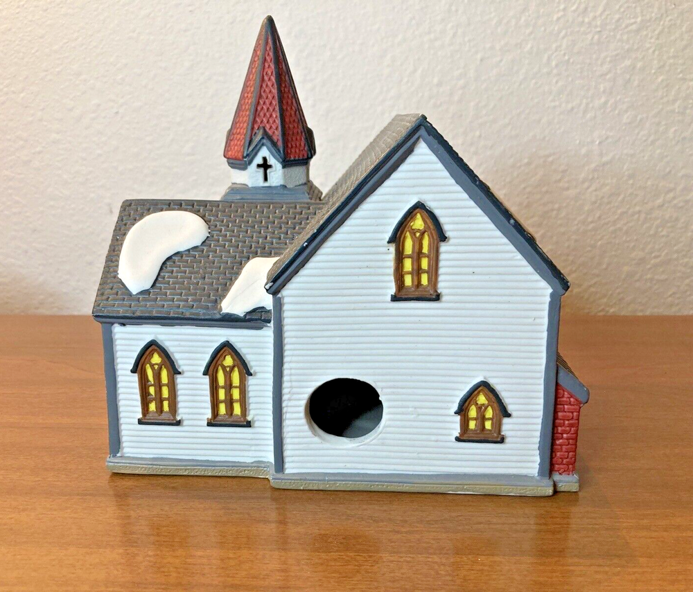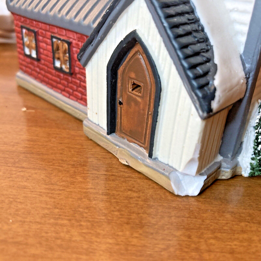 Vintage 1995 Lemax Porcelain Dickensvale Lighted House Church Village Collection 55173 small chip on bottom as can be seen in attached photos. Please see detailed pictures for the most accurate description. I try to describe items as accurately as I can. The photos play an important role in understanding the items’ overall condition. Comes from a smoke free, pet free home. Along with "recycling" items of yesteryear, I emphasize the importance of environmental safety and not abusing our Earth's natural resources. Recycled materials may be used when packing merchandise and will not compromise the integrity of safe delivery.