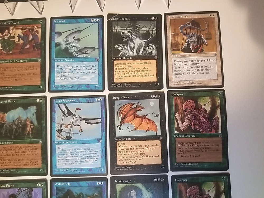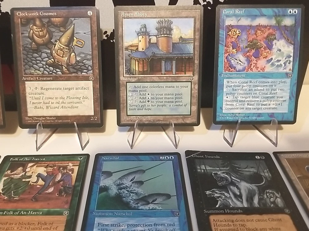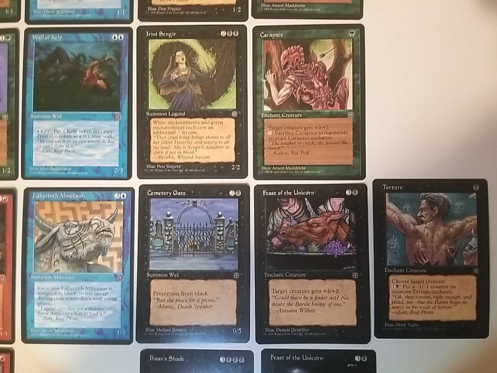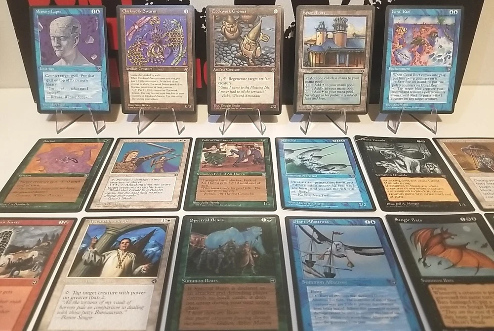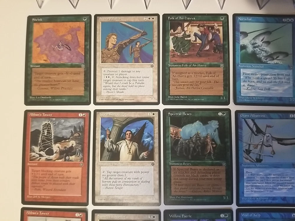 Card lot will be securely placed in a team bag and shipped in a bubble envelope. Cards are lightly played except one shown in the photos. This lot of 34 vintage Magic the Gathering trading cards from the Homelands set is a must-have for any collector. With cards in red, white, blue, black, and green, this set covers the full range of colors and includes all types of cards such as instant, summon, enchantment creature, enchantment, and artifact creature. The cards are lightly played (excellent) and made of high-quality card stock material. These cards were manufactured by Wizards of the Coast in the United States in 1995 and are in regular finish. They are perfect for Magic: The Gathering enthusiasts and collectors alike. The set comes in a standard size and is in English language. Don't miss the chance to add this rare collection to your MTG card collection.