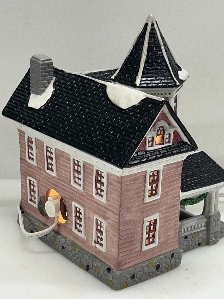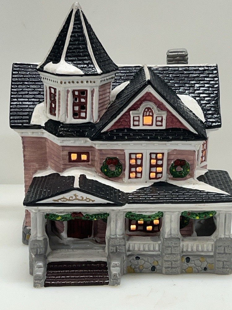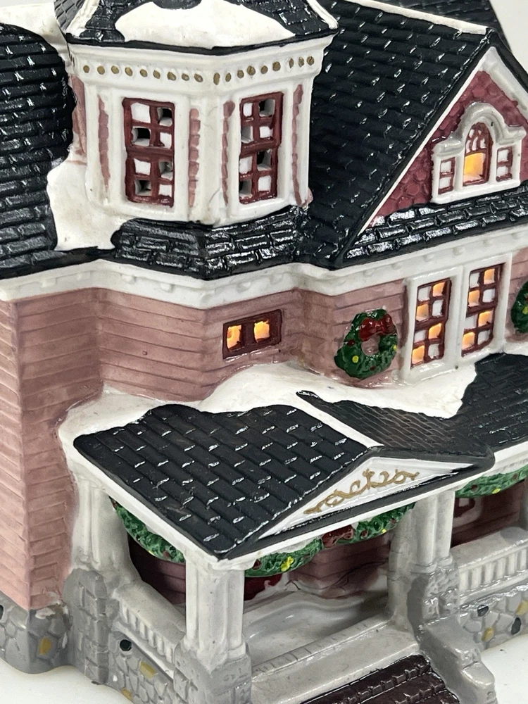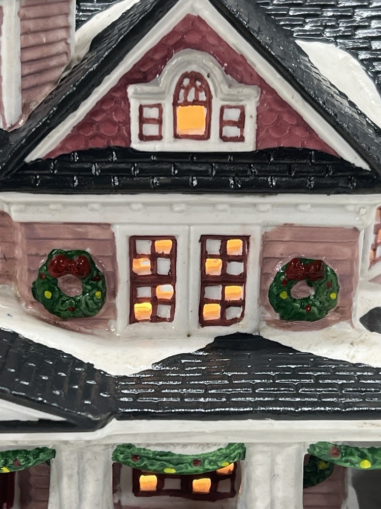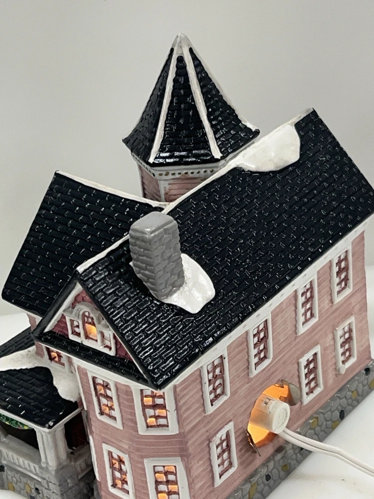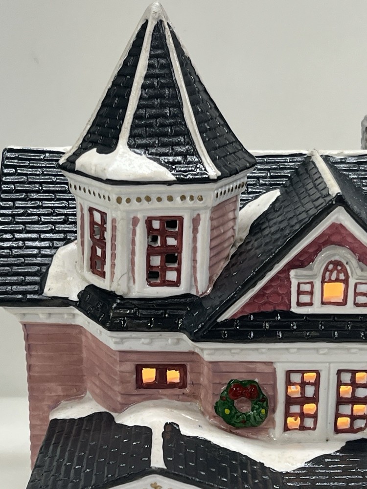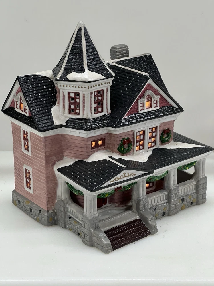 This beautiful piece from Dickens Collectables Victorian Series is a medium-sized, asymmetrical-shaped, multicolored porcelain Christmas Village house. It features a lighted design and is in excellent working condition. The house measures 8 inches in height, 7 inches in length, and 6 inches in width, making it perfect for any room in your home. The Victorian Series 293-8983 Pink Victorian Lighted House was manufactured in 1995 and is part of the late 20th century era. It comes in its original packaging box and is a great addition to any collection. The piece is not handmade, signed, or antique, but it is a wonderful miniature village that will add charm and warmth to your Christmas celebrations. Absolutely incredible pristine condition! Includes all original packaging including cord & light