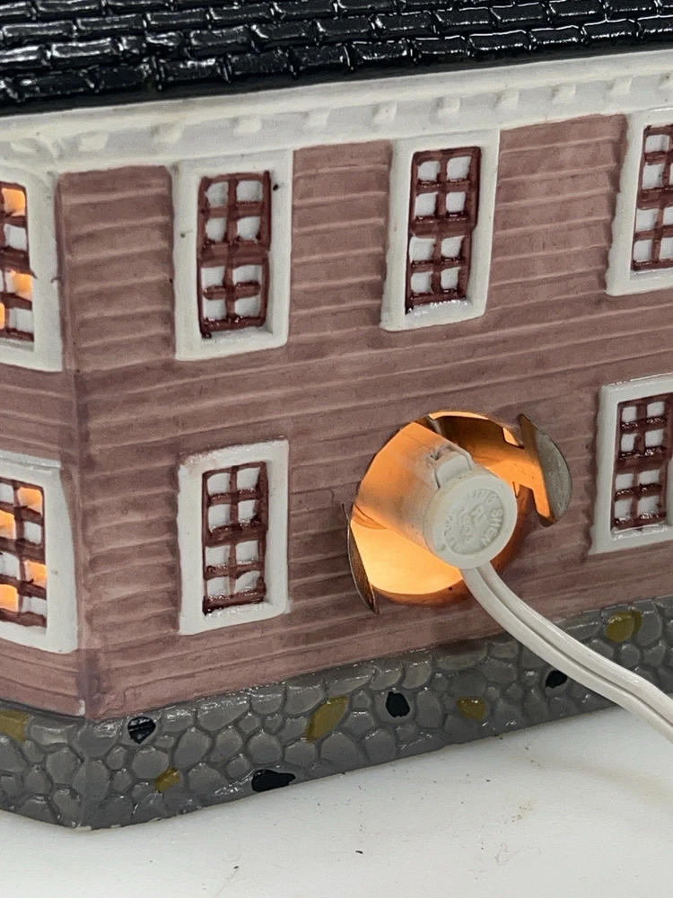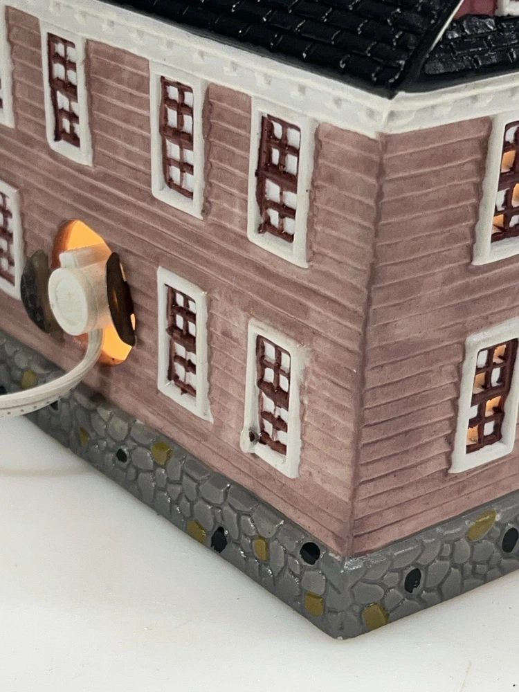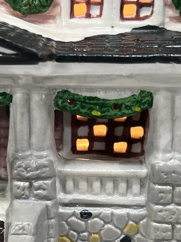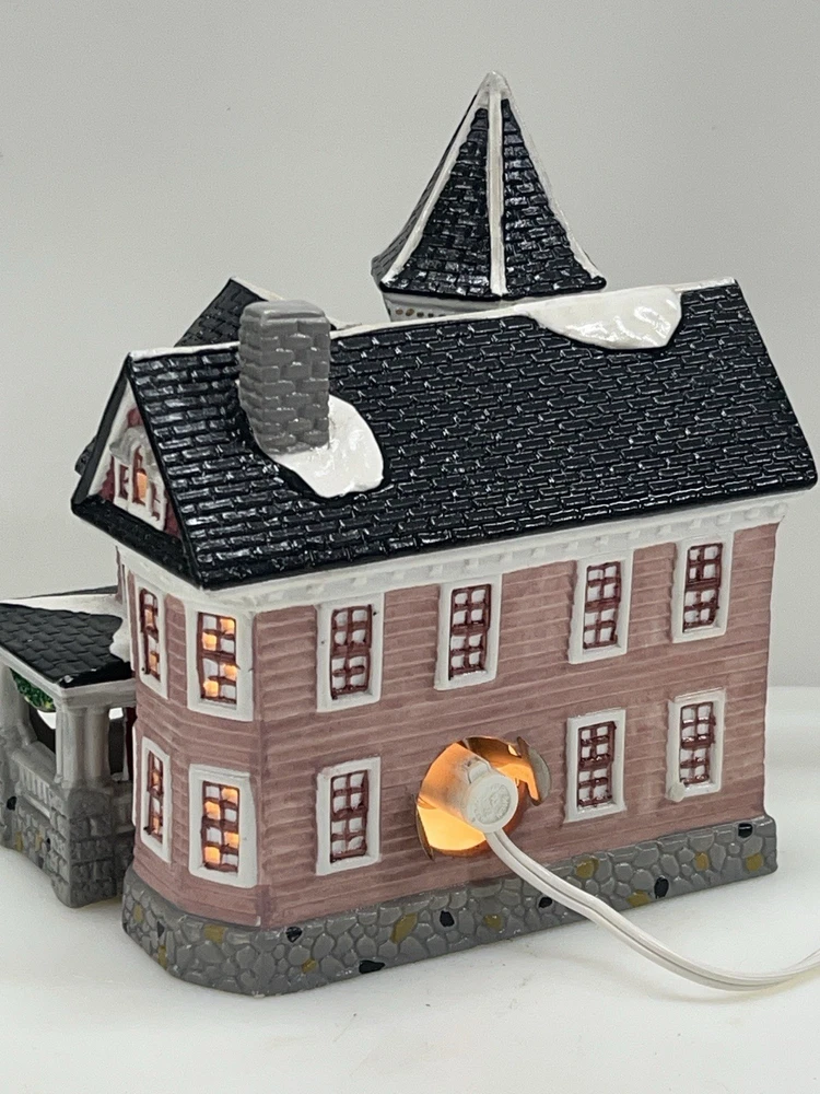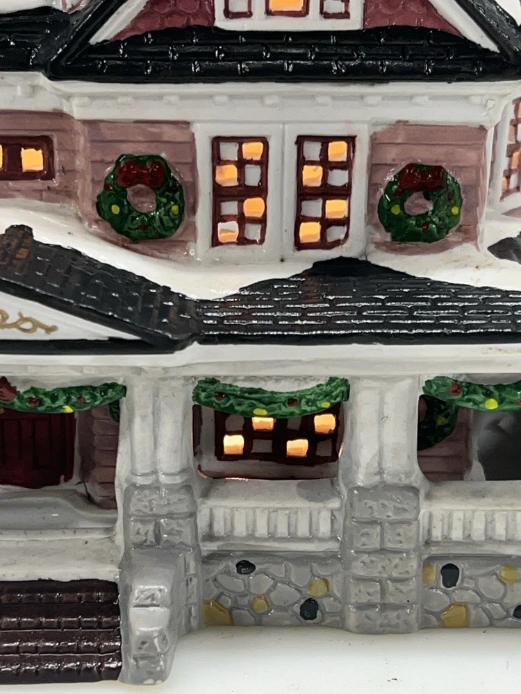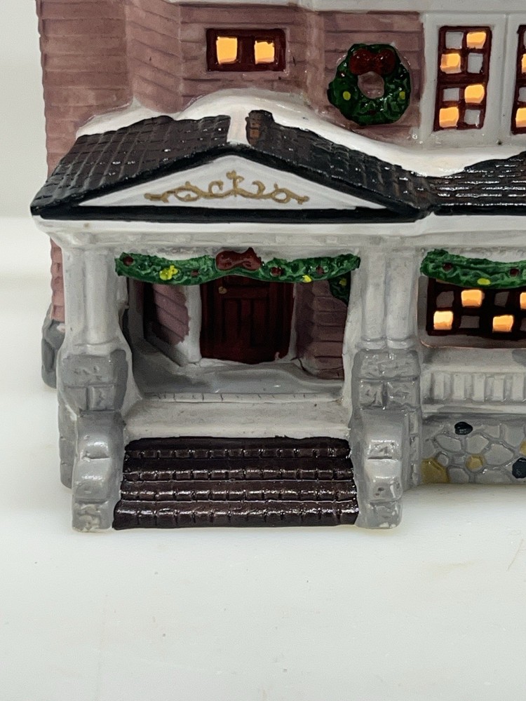 This beautiful piece from Dickens Collectables Victorian Series is a medium-sized, asymmetrical-shaped, multicolored porcelain Christmas Village house. It features a lighted design and is in excellent working condition. The house measures 8 inches in height, 7 inches in length, and 6 inches in width, making it perfect for any room in your home. The Victorian Series 293-8983 Pink Victorian Lighted House was manufactured in 1995 and is part of the late 20th century era. It comes in its original packaging box and is a great addition to any collection. The piece is not handmade, signed, or antique, but it is a wonderful miniature village that will add charm and warmth to your Christmas celebrations. Absolutely incredible pristine condition! Includes all original packaging including cord & light