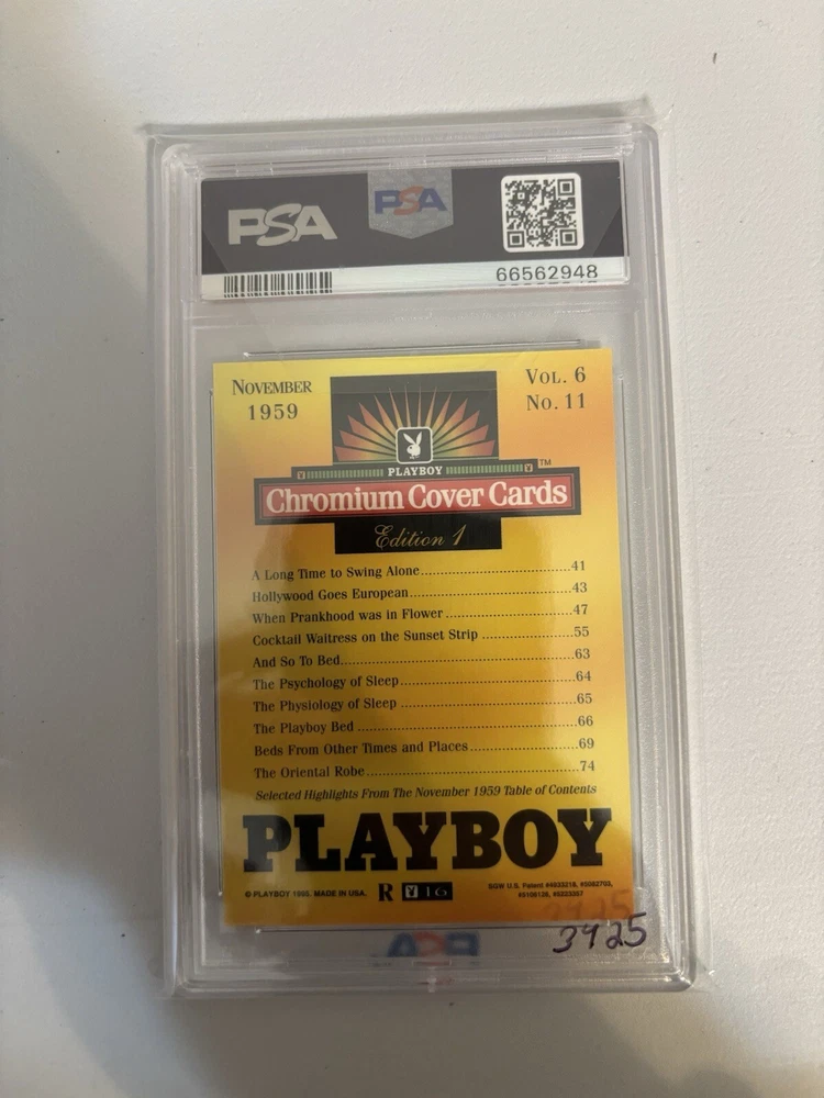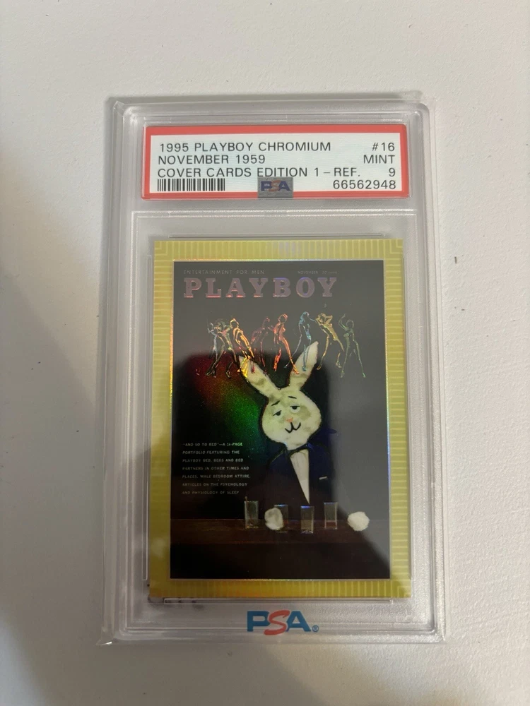 1995 Playboy Chromium Refractor Card #16 November 1959 Cover Cards PSA 9 Mint. Condition is Graded. Shipped with USPS Ground Advantage.