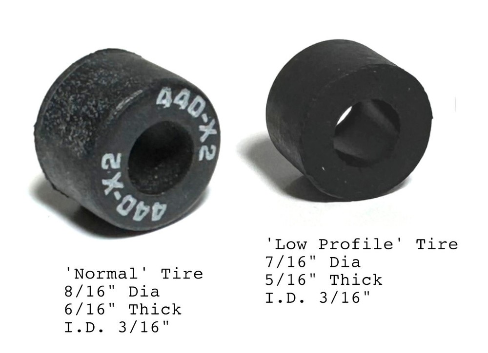 This listing is for TWENTY-FOUR (24) of TYCO Malaysia Factory Rear Tires, Lower and Less Wide "Low Profile" 1995 OEM Tune up parts. Soft supple silicone composite formulation was destined for the 440-X3 chassis when Mattel bought TYCO and crashed the slot car lineup. Some racers may silicone them on the hubs to prevent spin and encourage great Grip and Launch ! Rounded outer edge helps in cornering. Sold as is. Descriptions are very accurate; No Returns. PLEASE ASK QUESTIONS BEFORE YOU BUY IF YOU ARE UNSURE. We ship promptly & professionally. We happily combine orders & refund any excess s/h immediately upon shipping. We can always provide tracking. I charge $1 for expert handling/packaging, & actual shipping. We ship out of the country almost daily. Please refer to our feedback, social media or time selling HO slot cars for assurances of a good honest deal. Happy motorin' & thanks S'lots from Bob at Slot Car Central in SYR. We Know H.O.