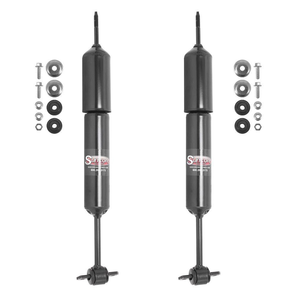 Air Suspension Specialist 1995-2003 Ford Explorer Front Air Suspension to Gas Shocks Conversion Kit Part # 135F-30-F Condition: New Fits: 1995 - 2003 Ford Explorer KEY FEATURES: Saves You Money Compared To OEM/Dealer Prices Convert from Air to Conventional Steel Springs Configured for Proper Ride height Brand NEW Limited Lifetime Warranty IMPORTANT FITMENT NOTES (MUST READ): Includes Front Gas Shocks and Hardware Replacing Electronic/Air Suspension INCLUDES (MUST READ): (2) Front Shock Absorbers PRODUCT DETAILS & FITMENT INTERCHANGE DATA SHIPPING & WARRANTY ABOUT Suncore’s Front Shock Absorber Conversion Kit Part 135F-30-F for your 1995 - 2003 Ford Explorer is the perfect upgrade for an aged and failing air suspension system. SPECIFICATIONS WARNING CA Proposition 65 No Position Front DETAILED VEHICLE FITMENT Year Make Model Submodel Position Drive Cyl Liter Body Notes 2003 Ford Explorer Eddie Bauer Front AWD 6 4.0 Sport Utility Includes Front Gas Shocks and Hardware Replacing Electronic/Air Suspension 2003 Ford Explorer Eddie Bauer Front AWD 8 4.6 Sport Utility Includes Front Gas Shocks and Hardware Replacing Electronic/Air Suspension 2003 Ford Explorer Eddie Bauer Front RWD 6 4.0 Sport Utility Includes Front Gas Shocks and Hardware Replacing Electronic/Air Suspension 2003 Ford Explorer Eddie Bauer Front RWD 8 4.6 Sport Utility Includes Front Gas Shocks and Hardware Replacing Electronic/Air Suspension 2003 Ford Explorer Eddie Bauer Front 4WD 6 4.0 Sport Utility Includes Front Gas Shocks and Hardware Replacing Electronic/Air Suspension 2003 Ford Explorer Eddie Bauer Front 4WD 8 4.6 Sport Utility Includes Front Gas Shocks and Hardware Replacing Electronic/Air Suspension 2003 Ford Explorer Limited Front AWD 6 4.0 Sport Utility Includes Front Gas Shocks and Hardware Replacing Electronic/Air Suspension 2003 Ford Explorer Limited Front 4WD 8 4.6 Sport Utility Includes Front Gas Shocks and Hardware Replacing Electronic/Air Suspension 2003 Ford Explorer Limited Front 4WD 6 4.0 Sport Utility Includes Front Gas Shocks and Hardware Replacing Electronic/Air Suspension 2003 Ford Explorer Limited Front RWD 8 4.6 Sport Utility Includes Front Gas Shocks and Hardware Replacing Electronic/Air Suspension 2003 Ford Explorer Limited Front RWD 6 4.0 Sport Utility Includes Front Gas Shocks and Hardware Replacing Electronic/Air Suspension 2003 Ford Explorer Limited Front AWD 8 4.6 Sport Utility Includes Front Gas Shocks and Hardware Replacing Electronic/Air Suspension 2003 Ford Explorer Postal Front RWD 6 4.0 Stripped Chassis Includes Front Gas Shocks and Hardware Replacing Electronic/Air Suspension 2003 Ford Explorer Postal Front 4WD 6 4.0 Stripped Chassis Includes Front Gas Shocks and Hardware Replacing Electronic/Air Suspension 2003 Ford Explorer XLS Front AWD 6 4.0 Sport Utility Includes Front Gas Shocks and Hardware Replacing Electronic/Air Suspension 2003 Ford Explorer XLS Front 4WD 6 4.0 Sport Utility Includes Front Gas Shocks and Hardware Replacing Electronic/Air Suspension 2003 Ford Explorer XLS Front RWD 6 4.0 Sport Utility Includes Front Gas Shocks and Hardware Replacing Electronic/Air Suspension 2003 Ford Explorer XLT Front 4WD 8 4.6 Sport Utility Includes Front Gas Shocks and Hardware Replacing Electronic/Air Suspension 2003 Ford Explorer XLT Front AWD 8 4.6 Sport Utility Includes Front Gas Shocks and Hardware Replacing Electronic/Air Suspension 2003 Ford Explorer XLT Front AWD 6 4.0 Sport Utility Includes Front Gas Shocks and Hardware Replacing Electronic/Air Suspension 2003 Ford Explorer XLT Front RWD 6 4.0 Sport Utility Includes Front Gas Shocks and Hardware Replacing Electronic/Air Suspension 2003 Ford Explorer XLT Front RWD 8 4.6 Sport Utility Includes Front Gas Shocks and Hardware Replacing Electronic/Air Suspension 2003 Ford Explorer XLT Front 4WD 6 4.0 Sport Utility Includes Front Gas Shocks and Hardware Replacing Electronic/Air Suspension 2002 Ford Explorer Eddie Bauer Front 4WD 6 4.0 Sport Utility Includes Front Gas Shocks and Hardware Replacing Electronic/Air Suspension 2002 Ford Explorer Eddie Bauer Front RWD 8 4.6 Sport Utility Includes Front Gas Shocks and Hardware Replacing Electronic/Air Suspension 2002 Ford Explorer Eddie Bauer Front RWD 6 4.0 Sport Utility Includes Front Gas Shocks and Hardware Replacing Electronic/Air Suspension 2002 Ford Explorer Eddie Bauer Front 4WD 8 4.6 Sport Utility Includes Front Gas Shocks and Hardware Replacing Electronic/Air Suspension 2002 Ford Explorer Limited Front 4WD 8 4.6 Sport Utility Includes Front Gas Shocks and Hardware Replacing Electronic/Air Suspension 2002 Ford Explorer Limited Front 4WD 6 4.0 Sport Utility Includes Front Gas Shocks and Hardware Replacing Electronic/Air Suspension 2002 Ford Explorer Limited Front RWD 8 4.6 Sport Utility Includes Front Gas Shocks and Hardware Replacing Electronic/Air Suspension 2002 Ford Explorer Limited Front RWD 6 4.0 Sport Utility Includes Front Gas Shocks and Hardware Replacing Electronic/Air Suspension 2002 Ford Explorer Postal Front 4WD 6 4.0 Stripped Chassis Includes Front Gas Shocks and Hardware Replacing Electronic/Air Suspension 2002 Ford Explorer Postal Front RWD 6 4.0 Stripped Chassis Includes Front Gas Shocks and Hardware Replacing Electronic/Air Suspension 2002 Ford Explorer XLS Front RWD 6 4.0 Sport Utility Includes Front Gas Shocks and Hardware Replacing Electronic/Air Suspension 2002 Ford Explorer XLS Front 4WD 6 4.0 Sport Utility Includes Front Gas Shocks and Hardware Replacing Electronic/Air Suspension 2002 Ford Explorer XLT Front RWD 6 4.0 Sport Utility Includes Front Gas Shocks and Hardware Replacing Electronic/Air Suspension 2002 Ford Explorer XLT Front 4WD 8 4.6 Sport Utility Includes Front Gas Shocks and Hardware Replacing Electronic/Air Suspension 2002 Ford Explorer XLT Front 4WD 6 4.0 Sport Utility Includes Front Gas Shocks and Hardware Replacing Electronic/Air Suspension 2002 Ford Explorer XLT Front RWD 8 4.6 Sport Utility Includes Front Gas Shocks and Hardware Replacing Electro