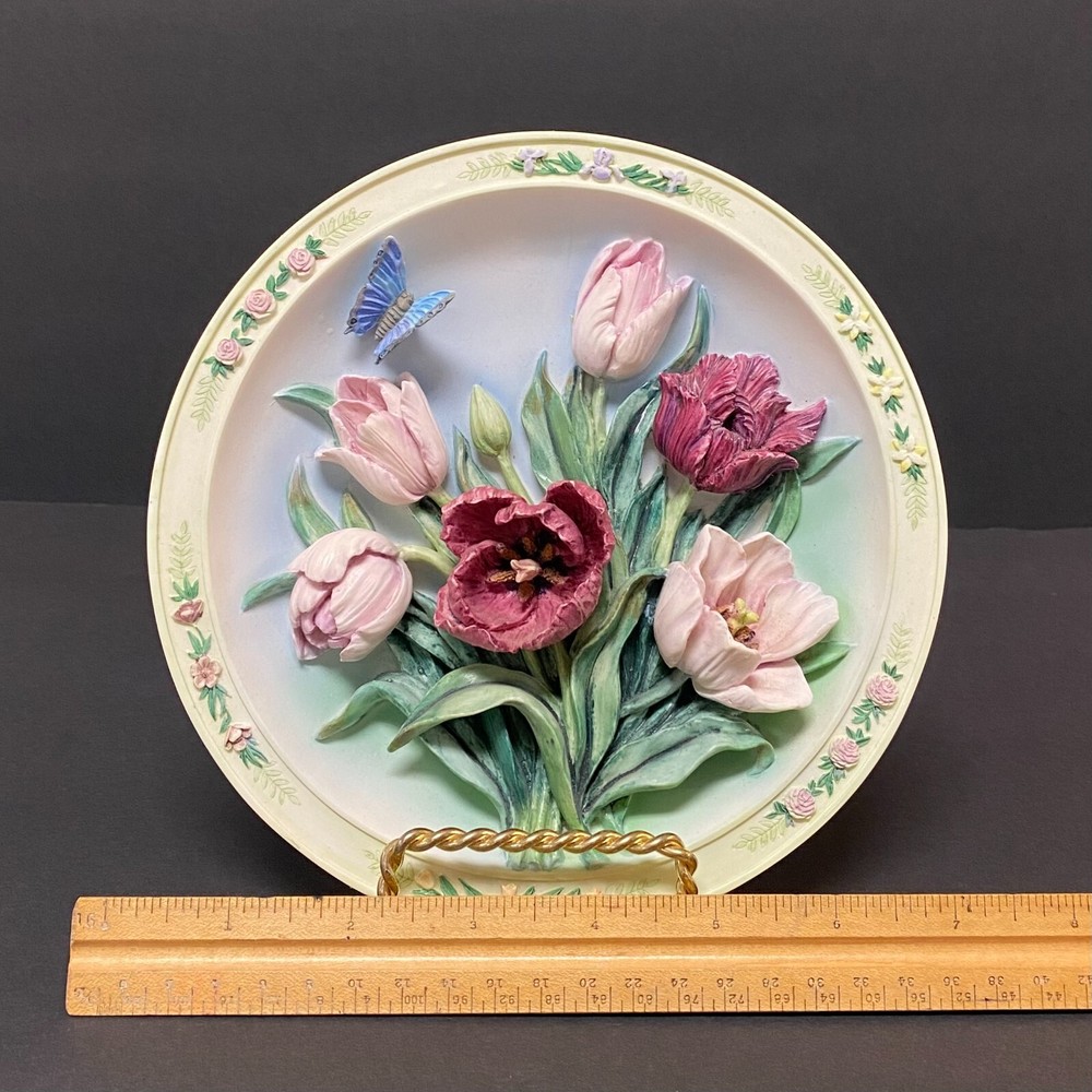 1996 "The Tulip Garden" Vintage Limited Edition 3D Plate - Bradford Exchange P late #: A14531 Art by Lena Liu " Beautiful Gardens " Series NOT TO BE USED FOR FOOD. DECORATION PURPOSES ONLY. [Q-DC1]