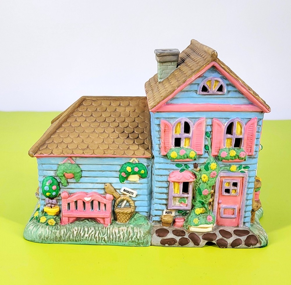 BRAND: 1996 Midwest of Cannon Falls, Cottontail Lane, Garden Shoppe, Porcelain Hand Painted. Beautiful Condition! LOC/I-3 COLORWAY: Blue, Pink, Brown, Green, White, Black, Lavender, Gray, Yellow, Tan. SIZE: Approximately 7" Long, 5" Wide, and 5.5" Tall. CONDITION: This vintage, rare colorful little Porcelain Garden Shoppe is in beautiful condition. There are no signs of cracks, chips, or crazing. Please see my photos for exact details. **** Please note the cord and light bulb are not included with the cottage. They are easily found at any hobby/craft store. Thank you for stopping by my shop today and have a wonderful afternoon!