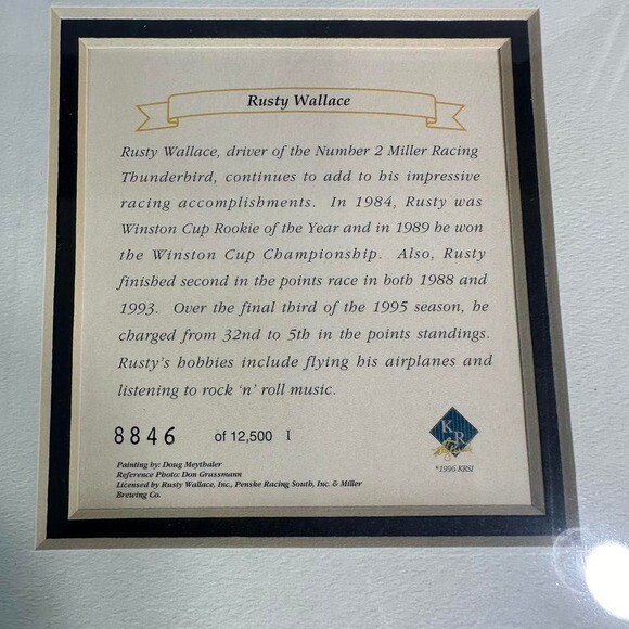 1996 Rusty Wallace #2 Nascar 11x14 MATTED Kelly Russell Lithograph Print