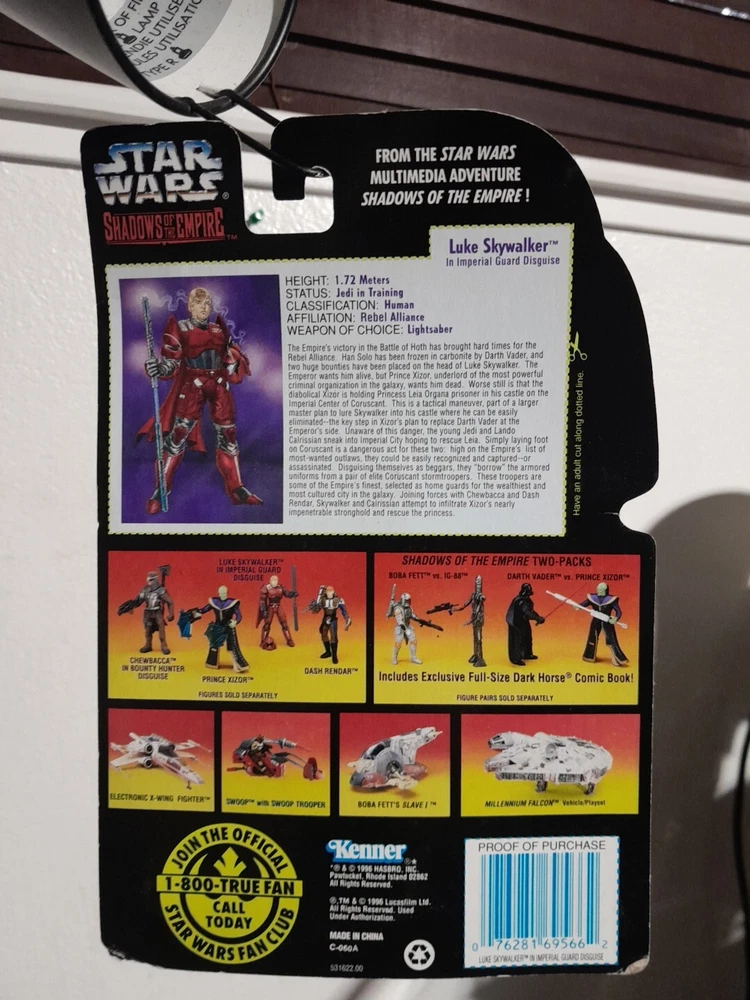 This collectible action figure features Luke Skywalker in Imperial Guard Disguise from the 1996 Star Wars Shadows of the Empire franchise. Fans of science fiction and horror will appreciate the attention to detail in this item, which is perfect for any Star Wars collector. The figure is in great shape and ready to be added to your collection.