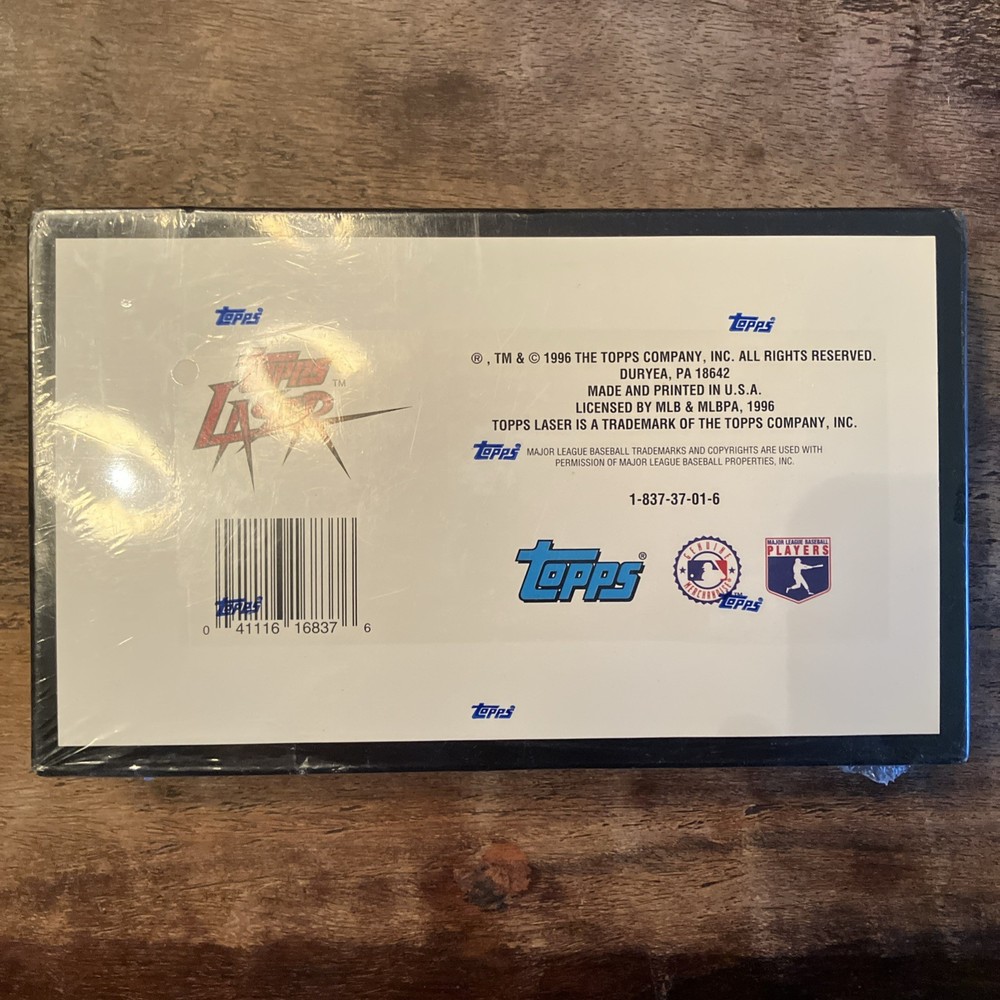 The product is a rare and highly sought-after 1996 Topps Laser Baseball Series 1 hobby box, containing 24 packs of sports trading cards. This vintage collection features cards from the Major League (MLB) with a focus on the New York Yankees team from that season. Produced by Topps, this factory sealed box offers collectors a unique opportunity to own a piece of baseball history from 1996.
