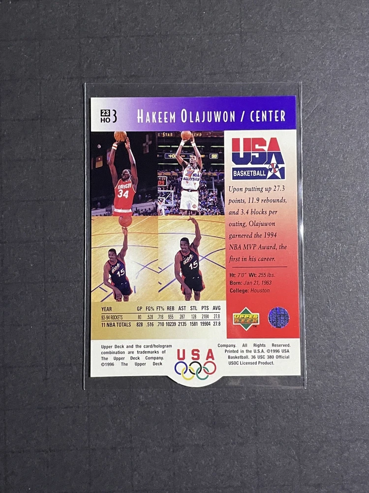 1996 Upper Deck USA Hakeem Olajuwon Card #23HO3 - Houston Rockets