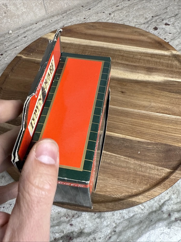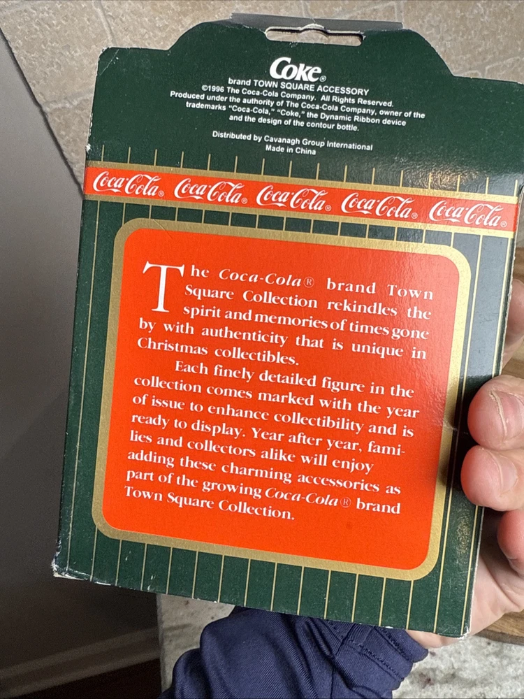 Signed:NoBrand:Coca-ColaNumber in Pack:1Subject:Coca ColaTheme:SeasonalYear Manufactured:1996Custom Bundle:NoType:Christmas VillageDepartment:AdultsOriginal/Reproduction:Originalgtin13:715429971083Antique:NoColor:MulticolorCharacter Family:Town SquareCollection:Town SquareUPC:715429971083Era:Late 20th Century (1970-1999)Additional Parts Required:NoCountry/Region of Manufacture:ChinaOccasion:ChristmasTime Period Manufactured:1990-1999Customized:NoMaterial:ResinModified Item:NoShape:SquareFeatures:BoxedHandmade:NoEngraved:NoPackaging:BoxRoom:Any Room