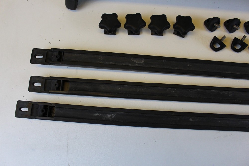 Toyota 4Runner Factory Roof Rack 1996-1997-1998-1999-2000-2001-2002 Complete roof rack Good + condition Missing paint on long front to back runners with rust on both Missing paint on crossbars Could use a respray or use it as it is. All hardware to attach included You will receive item in photos Please see my other auctions for more parts and other great items