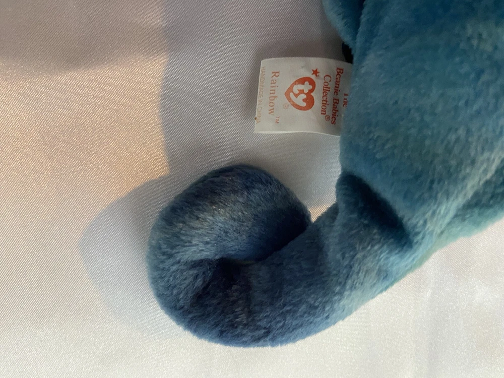 This adorable Beanie Baby from 1997 is a must-have for collectors! The vibrant green color and classic PVC pellets give it that nostalgic feel. Perfect condition, super soft, and full of charm—definitely a standout in any collection. Love the rainbow details!