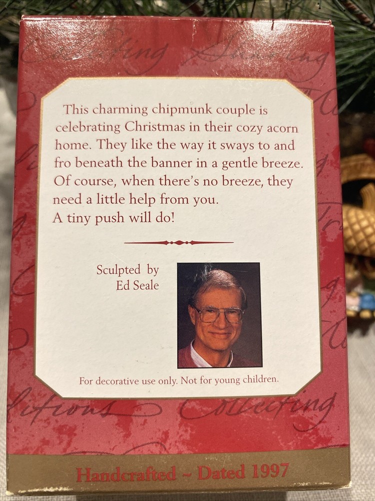 California Prop 65 Warning:NoType:OrnamentFranchise:HallmarkTime Period Manufactured:1990-1999Department:AdultUPC:0015012376937Occasion:ChristmasMaterial:PlasticShape:AcornMPN:QX6465Brand:HallmarkCharacter:ChipmunksSubject:Our First Christmas TogetherCollection:OrnamentsTheme:First Christmas TogetherYear Manufactured:1997Color:Multicolorgtin13:0015012376937Features:Artist DesignedProduction Technique:HandcraftedCountry/Region of Manufacture:ChinaNumber of Items:1Original/Licensed Reproduction:OriginalSet Includes:Ornament