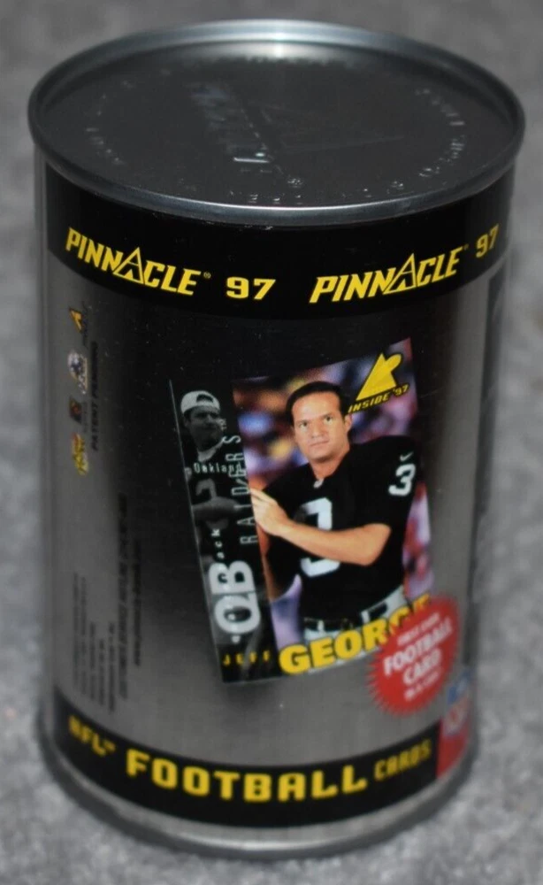 THIS IS A LISTING FOR 1997 PINNACLE INSIDE CARDS IN A CAN. CONTAINS 1 PACK OF CARDS WITH TEN CARDS IN THE PACK. THE CAN PICTURES OAKLAND RAIDERS JEFF GEORGE. IT IS NOT OPENED. IT MAY/HAS SLIGHT MARK/MARKS ON TOP/SIDES OF THE CAN AS PICTURE SHOWS. IF YOU HAVE ANY QUESTIONS PLEASE CONTACT ME BEFORE PURCHASEING THE ITEM. GREAT COLLECTORS ITEM. I ACCEPT EBAY ONLINE PAYMENTS AND PAYPAL. MOST ORDERS ARE SHIPPED IN ONE BUSINESS DAY. THANKS FOR LOOKING AND HAVE A GREAT DAY. On Sep-18-02 at 02:56:00 PDT, seller added the following information: After purchasing, pay instantly with your credit card through PayPal!