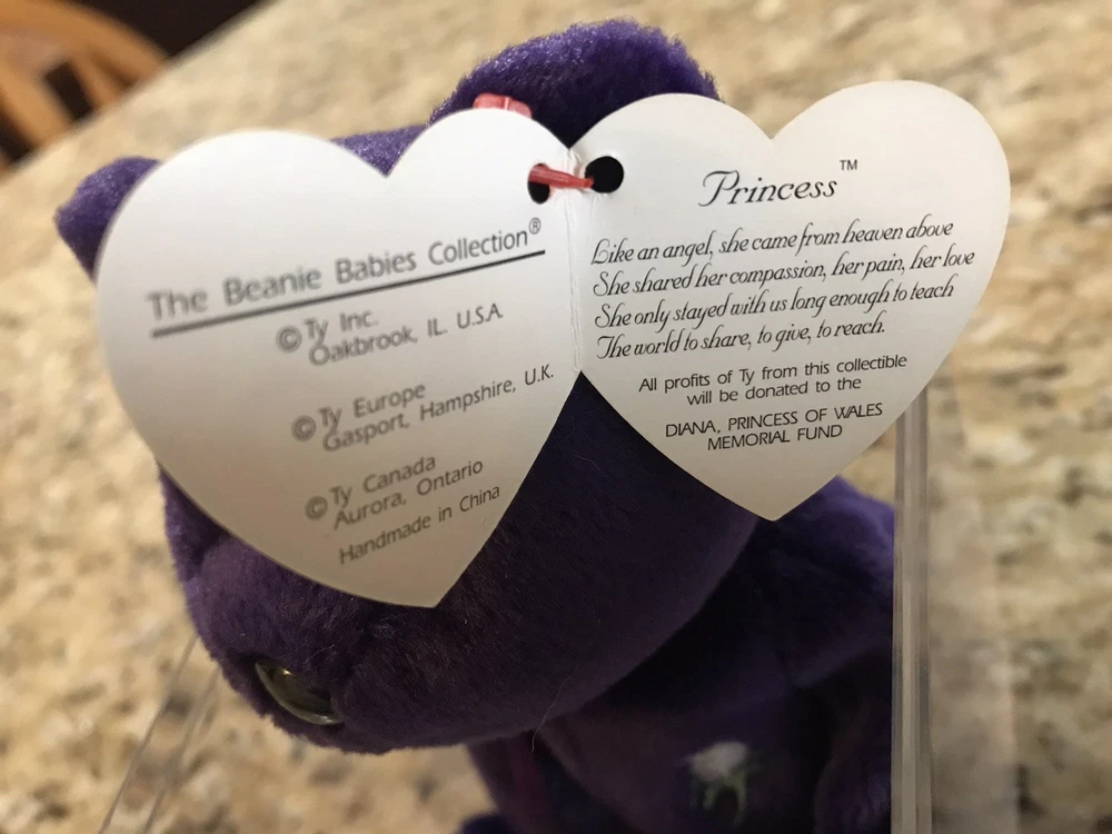 The product is a rare 1997 Princess Diana Beanie Baby by Ty. This collectible plush toy features the iconic Princess Diana design and is part of the original Beanie Babies series. With its limited availability in 1997 and the brand's reputation for quality, this Beanie Baby is sought after by collectors and fans of both Princess Diana and Ty products. I consider it new since I acquired it I have kept it in the acrylic box to keep it away from dust and moisture! Please see the pictures for more item descriptions.
