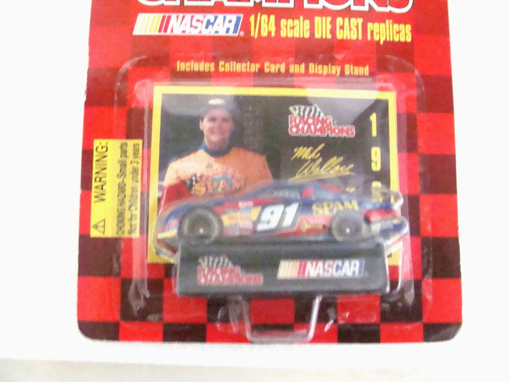 1997 Racing Champions 1:64 Nascar diecast car. Car in new condition on the never opened original blister card bubble. Pkg in good condition. Small upturn on lower corner from storage. Bubble is clear, clean and dent free. Please VIEW all Photos. Car sits on stand. You also receive a 1997 Mike Wallace collector card in same package. SPAM is the primary sponsor on this multi colored Chevy Monte Carlo. White #91 on roof top and door panels. Mike Wallace name above door windows. Large SPAM lettered in yellow on blue hood. SPAM also on uppr rear qtr and red rear panel. Yellow spoiler and valance. Plenty of color and co-sponsors on car. Clear windows. Gray net and interior. Goodyears. Winner to pay $6.85 S/H USPS GA w/tracking. EBMP accepted. Thanks for looking & great luck with your bid. Combo shipping will be $1.00 each for additional 1:64 or 1:87 cars. Please contact me for invoice if the cart option does not work.