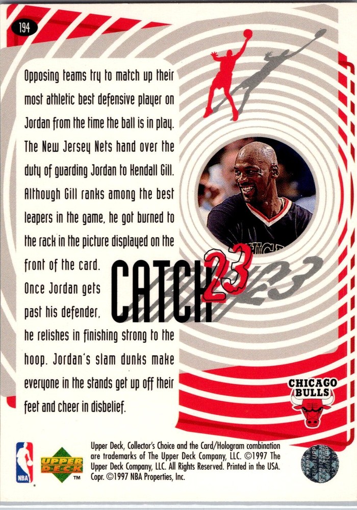 Season: 1997 Team: Chicago Bulls Graded: No Sport: BASKETBALL Year Manufactured: 1997 Autographed: No League: NBA Card Number: 194 Set: 1997-98 Collector's Choice Type: Sports Trading Card Player/Athlete: Michael Jordan