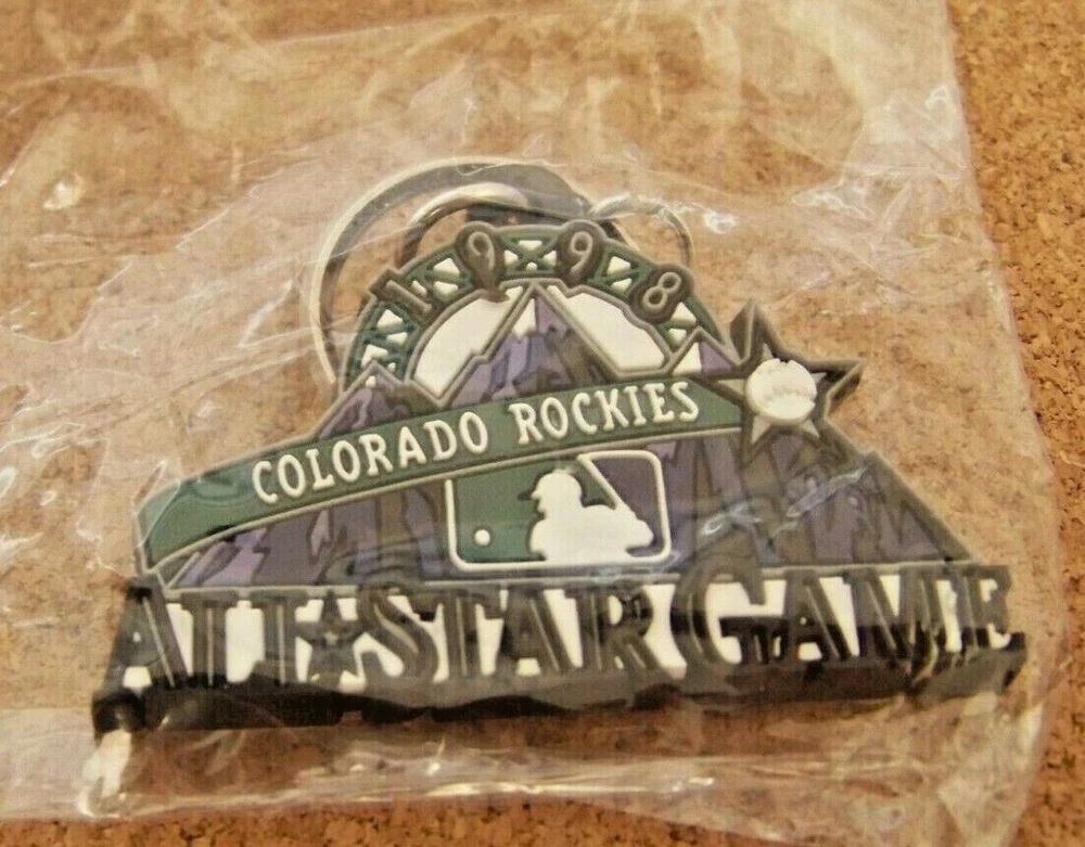 1998 All-Star Game Colorado Rockies Coors Field PVC key ring This MLB licensed key ring measures about 3.4" long, including the chain. All Star Game, hosted by the Colorado Rockies at Coors Field. Don’t forget to click on my "Stores" link, next to my eBay name, to see other items I currently have listed for sale, or you can copy and paste this address into your browser: stores.ebay.com/highcountrycollectibles SHIPPING INFORMATION Shipping to U.S. addresses is FREE! HIGH COUNTRY COLLECTIBLES Since 1989 – A LEADER IN THE DENVER SPORTS MEMORABILIA MARKET. Check out my other auctions and listings, and keep an eye out for the different, unusual, and EXCLUSIVE items available nowhere else but from High Country Collectibles.