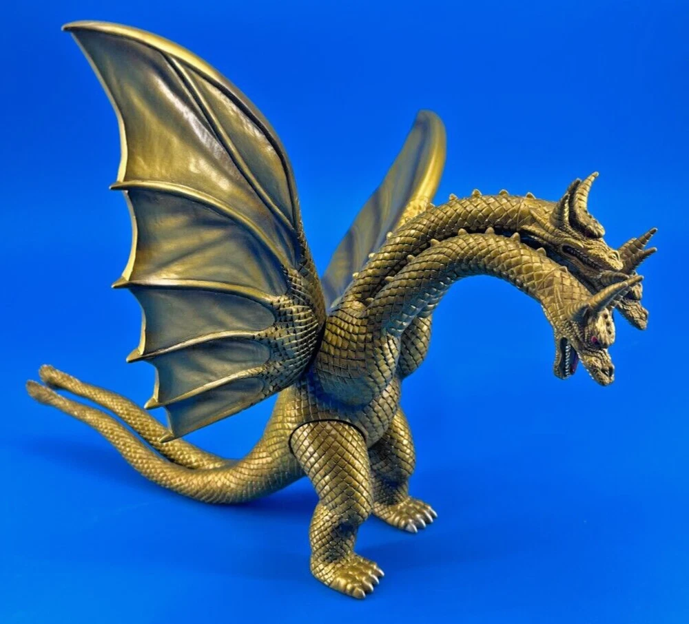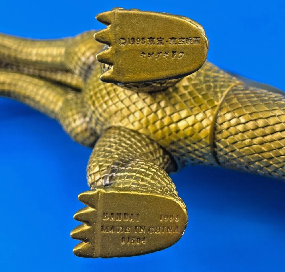 Custom UPC: T- Character: King Ghidora Year Manufactured: 1998 Seller Notes: “Great condition! These are loose action figures with signs of wear and tear.” Type: Action Figure Material: Vinyl Vintage: No Color: Gold Brand: Bandai Franchise: Godzilla Item Height: 8 in