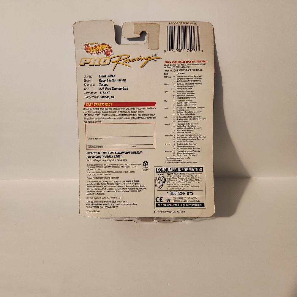 1. This Hot Wheels Thunderbird is a must-have for NASCAR fans! The 1998 Ernie Irvin #28 Havoline edition looks amazing in its sleek red-and-white livery. Excellent condition, just like new—perfect for collectors or as a nostalgic gift. Fast shipping with USPS Ground Advantage. Super happy with my purchase!