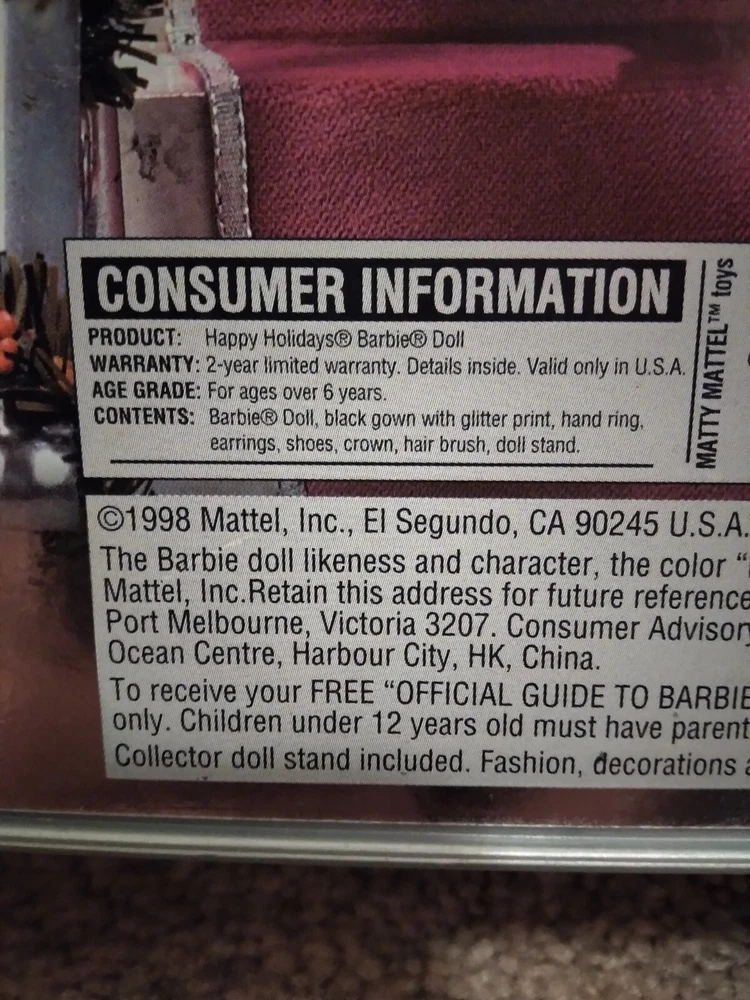 1998 Happy Holidays Special Edition Barbie Doll Mattel #20200 RARE MISPRINT BOX*