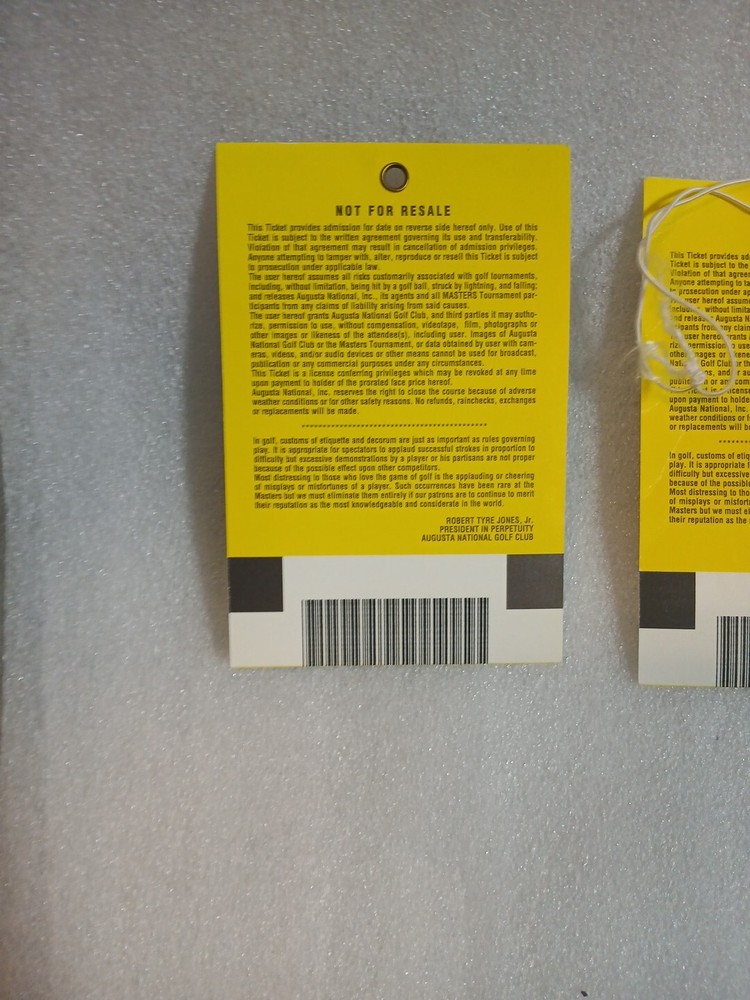1998 Masters Tuesday Practice Round Tickets Mark O Meara Winner Pair