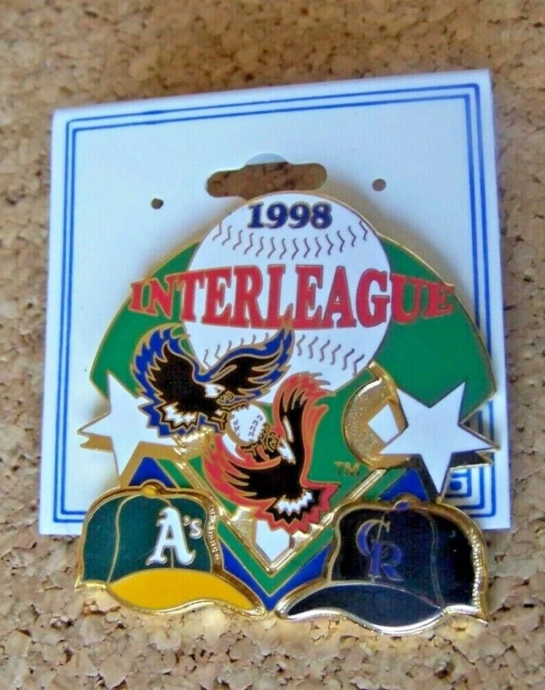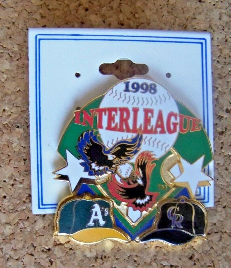 1998 Oakland Athletics A's vs Colorado Rockies Interleague Play pin Item Description: Pin: MLB licensed, post and butterfly clip backed, gold toned Pin Size: measures about 1.75" wide Pin Condition: t hese pins never came with packaging, so although could be new, there may a few minor nicks. Packaging: black plastic backing card Packaging condition: light wear, nicks, marks Shipping: Shipping Time : 1 business day of receiving cleared payment, Mondays thru Fridays. U.S.A. Shipping Costs: FREE! Return Policy: Returns accepted, buyer pays return shipping unless there’s an error on seller’s part. Additional Information: Full e-mail support for inquiries or problems. HIGH COUNTRY COLLECTIBLES Since 1989 – A LEADER IN THE DENVER SPORTS MEMORABILIA MARKET. Check out my other auctions and listings, and keep an eye out for the different, unusual, and EXCLUSIVE items available nowhere else but from High Country Collectibles. Don’t forget to click on my "Stores" link, next to my eBay name, to see other items I currently have listed for sale, or you can copy and paste this address into your browser: stores.ebay.com/highcountrycollectibles