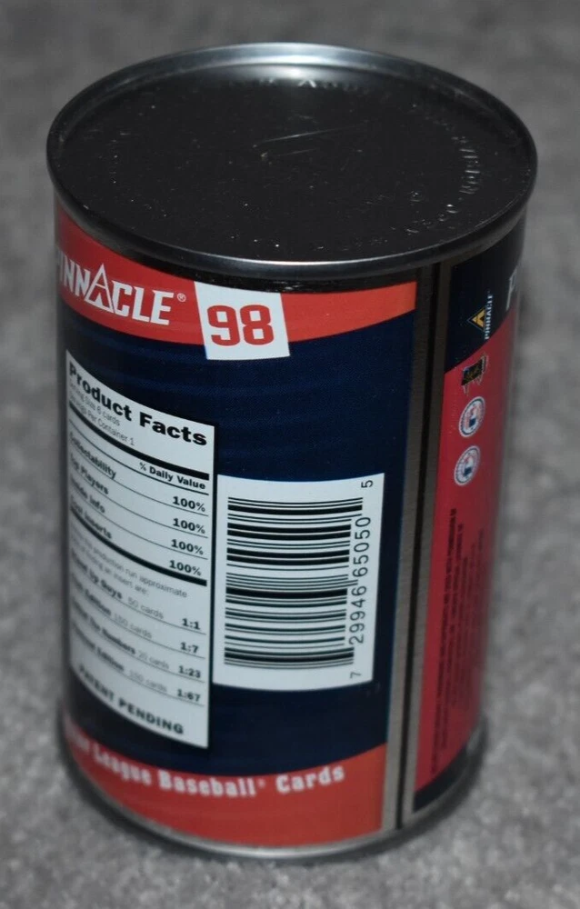 THIS IS A LISTING FOR 1998 PINNACLE INSIDE CARDS IN A CAN. CONTAINS 1 PACK OF CARDS WITH SIX CARDS IN THE PACK. THE CAN PICTURES ST. LOUIS CARDINALS MARK McGwire. IT IS NOT OPENED. IT HAS SLIGHT MARK/MARKS ON TOP OF CAN AS PICTURE SHOWS. IF YOU HAVE ANY QUESTIONS PLEASE CONTACT ME BEFORE PURCHASEING THE ITEM. GREAT COLLECTORS ITEM. I ACCEPT EBAY ONLINE PAYMENTS AND PAYPAL. MOST ORDERS ARE SHIPPED IN ONE BUSINESS DAY. THANKS FOR LOOKING AND HAVE A GREAT DAY. On Sep-18-02 at 02:56:00 PDT, seller added the following information: After purchasing, pay instantly with your credit card through PayPal!