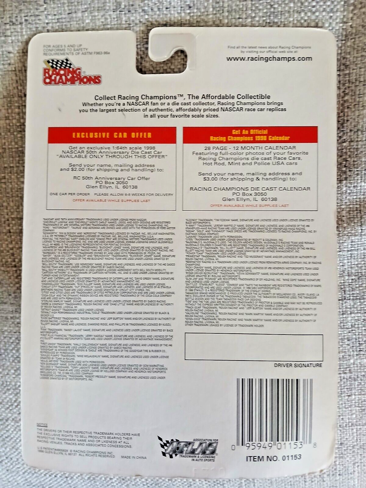 1998 RACING CHAMPIONS NASCAR 50TH ANNIVERSARY ELLIOTT SADLER 1:64 DIE CAST REPLICA