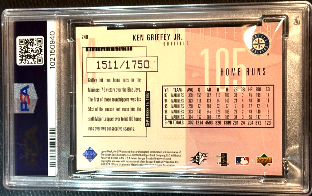 1998 SPx Finite /1750 Spectrum #240 Ken Griffey Jr. Power Passion PSA 7 Very Low Pop!
