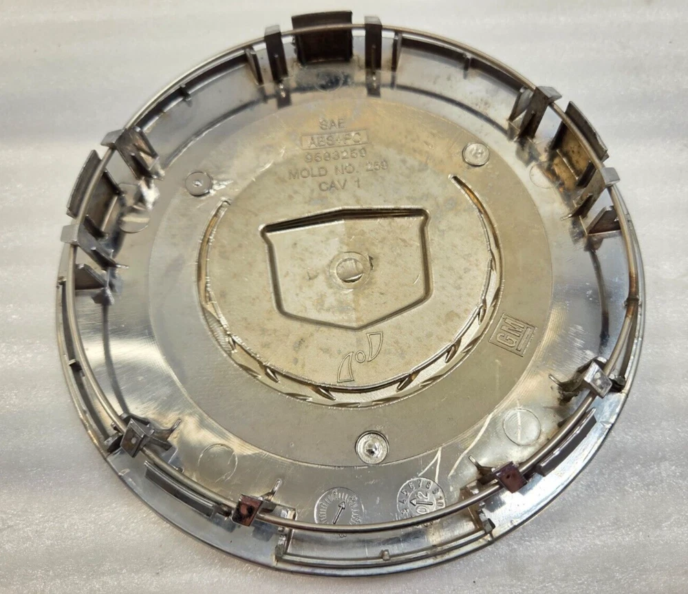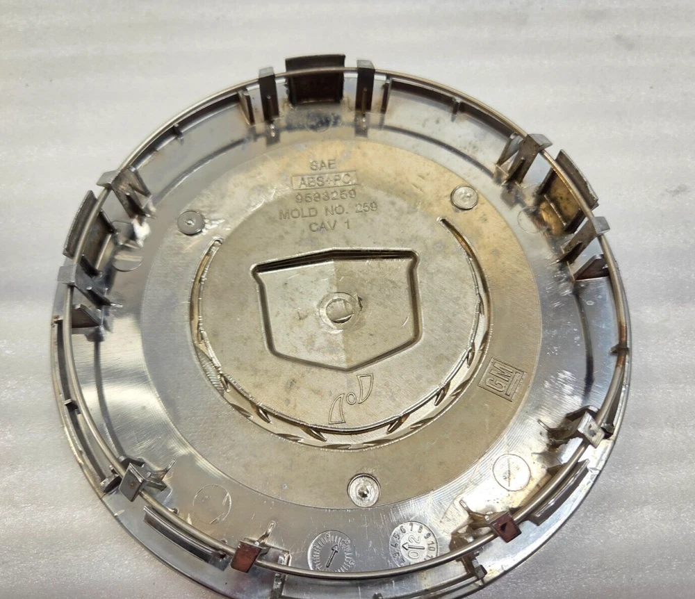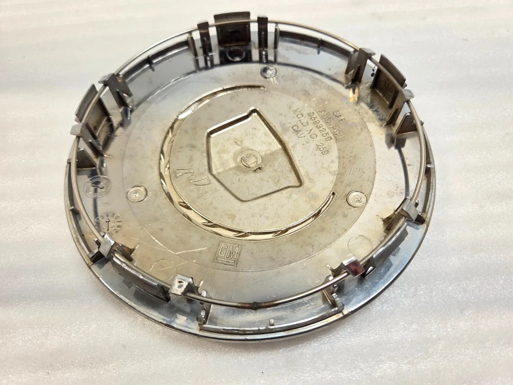 Placement on Vehicle: Front, Left, Rear, Right Type: Wheel Center Cap Emblem Type: Cadillac Number in Pack: 1 Brand: Cadillac Manufacturer Warranty: No Warranty Seller Notes: “USED PLEASE SEE PHOTOS FOR DETAILS THERE ARE SOME SMALL SCRATCHES” LOCATION: 02.03.25-3 Material: Chrome Manufacturer Part Number: 9593259