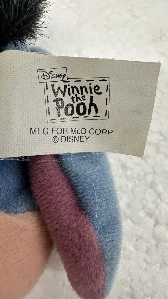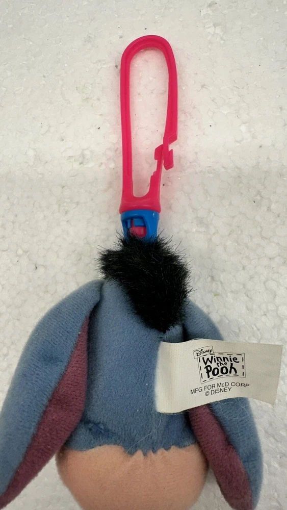 This adorable plush toy features Eeyore, a lovable character from the Winnie the Pooh & Friends franchise. It was originally released as a clip-on key chain for McDonald's Happy Meals in 1999, making it a rare and sought-after collectible item. The toy is made with high-quality materials and has been well-preserved over the years, ensuring that it will remain a cherished possession for years to come. The brand of this toy is Disney and it features the iconic character Eeyore. It is perfect for fans of Winnie the Pooh & Friends and collectors of fast food and cereal premiums. This item is a must-have for any toy enthusiast and will make a great addition to any collection.