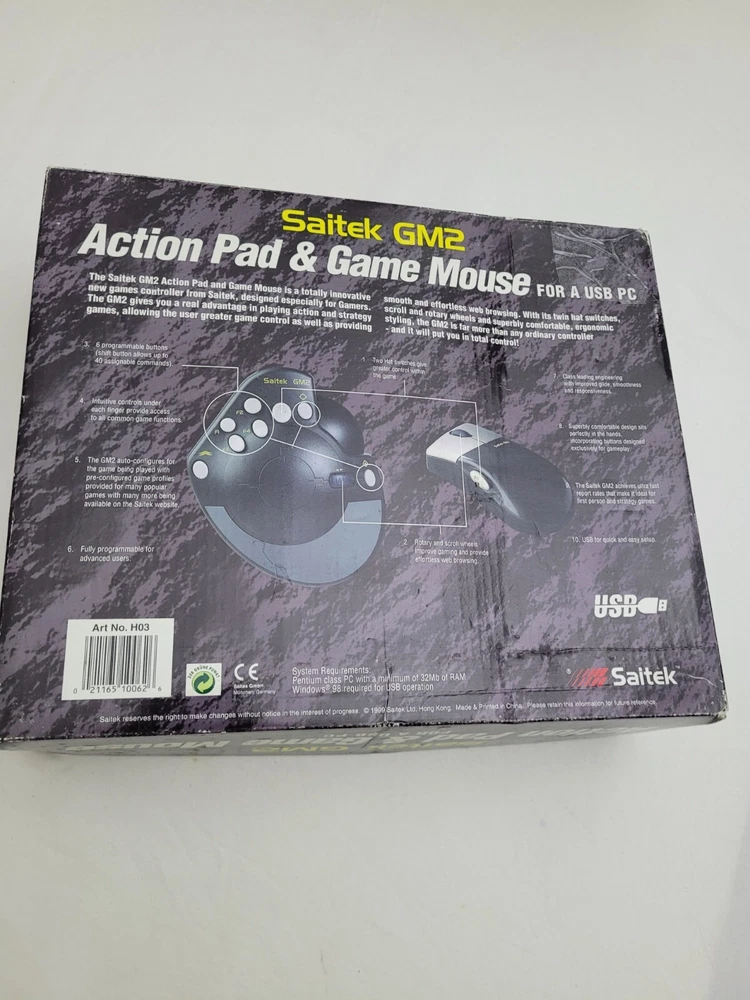 1999 Saitek GM2 Action Pad & Mouse PC/USB Brand New In Package No Game. Please inspect all pictures and description . **We try to adequately describe each item (photographs) & disclose flaws/blemishes. **C olors may slightly differ due to monitor settings. If you have any questions or would like to see additional photos, please do not hesitate to contact us. We will try to respond to your question or request promptly. **If you encounter a problem with your item, please contact us.. Items ship out the same or next day. Items are from a smoke-free environment . Items stored in an air conditioned area.