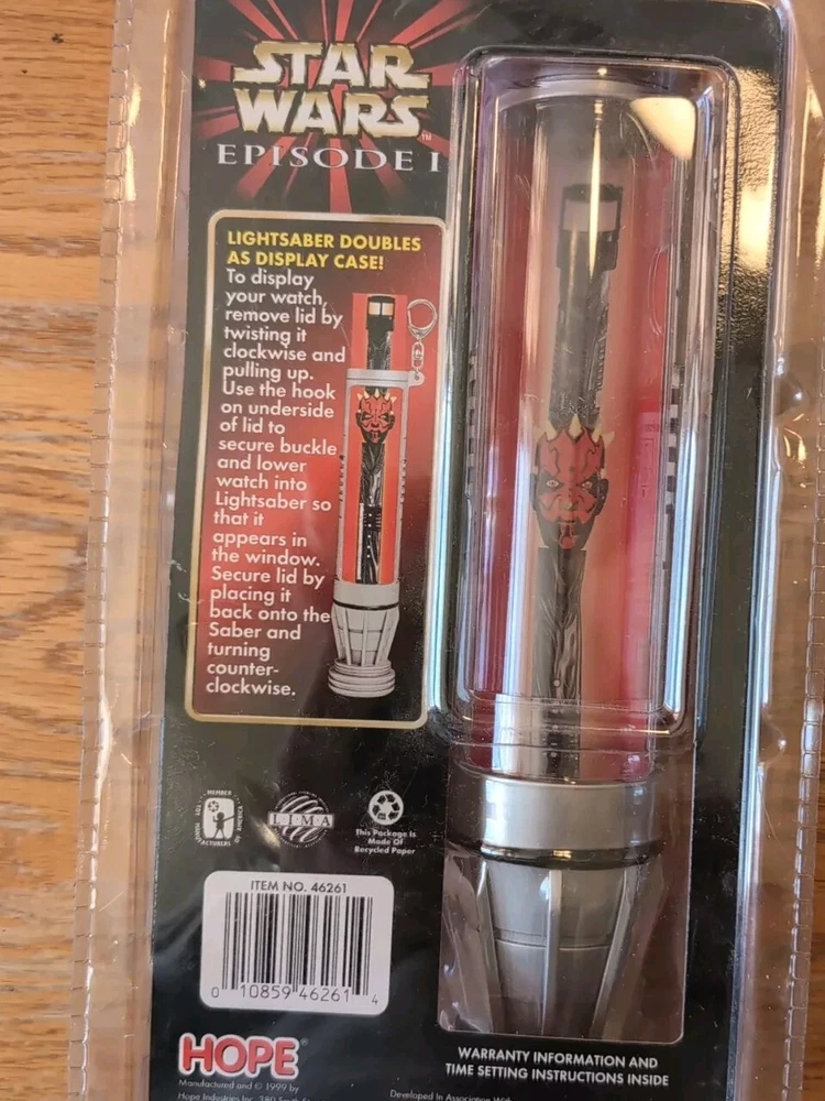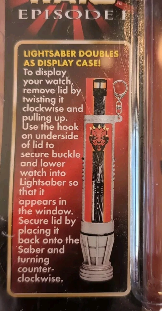 1999 Star Wars Episode 1 Darth Maul Collector Watch with Qui-Gon Jinn Lightsaber Display Case . New and still in box unopened.