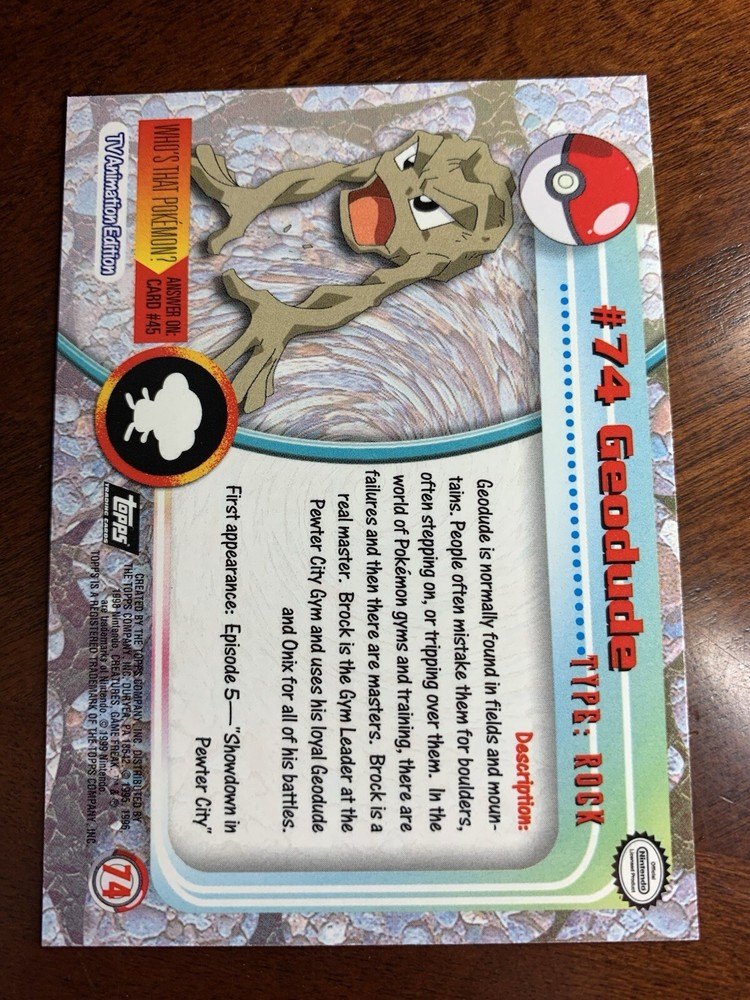 1999 Topps Pokemon TV Animation #TV6 Geodude FREE COMBINED SHIP