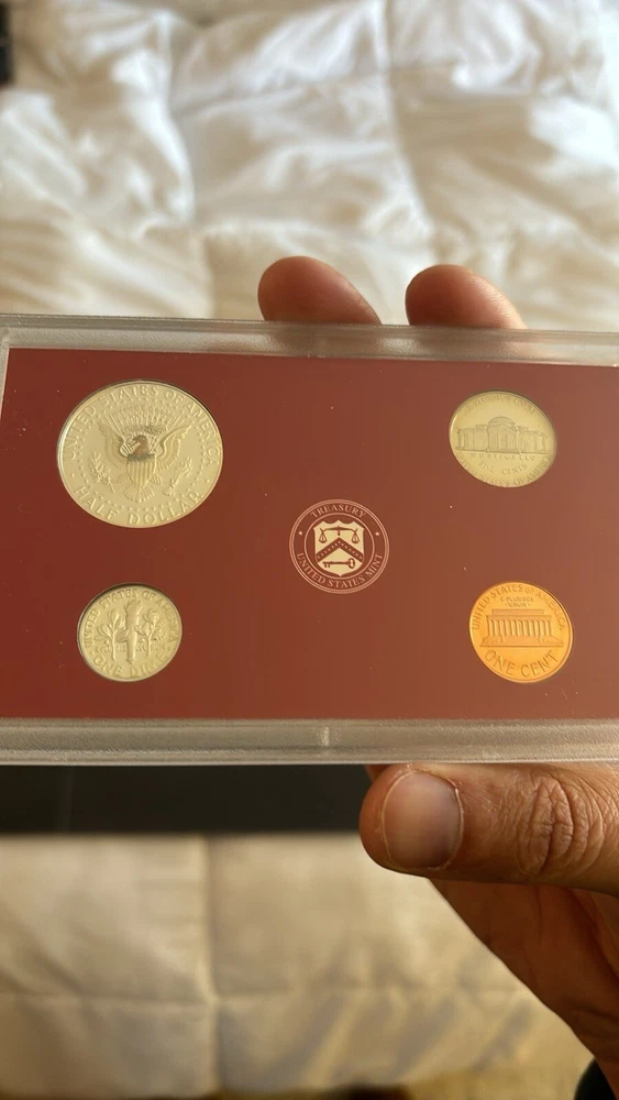 This is a 1999 US Silver 9 coin proof set with state quarters, in US Mint packaging. The set includes uncirculated coins made of silver, with a proof strike type. It was manufactured in the United States and certified by the U.S. Mint.