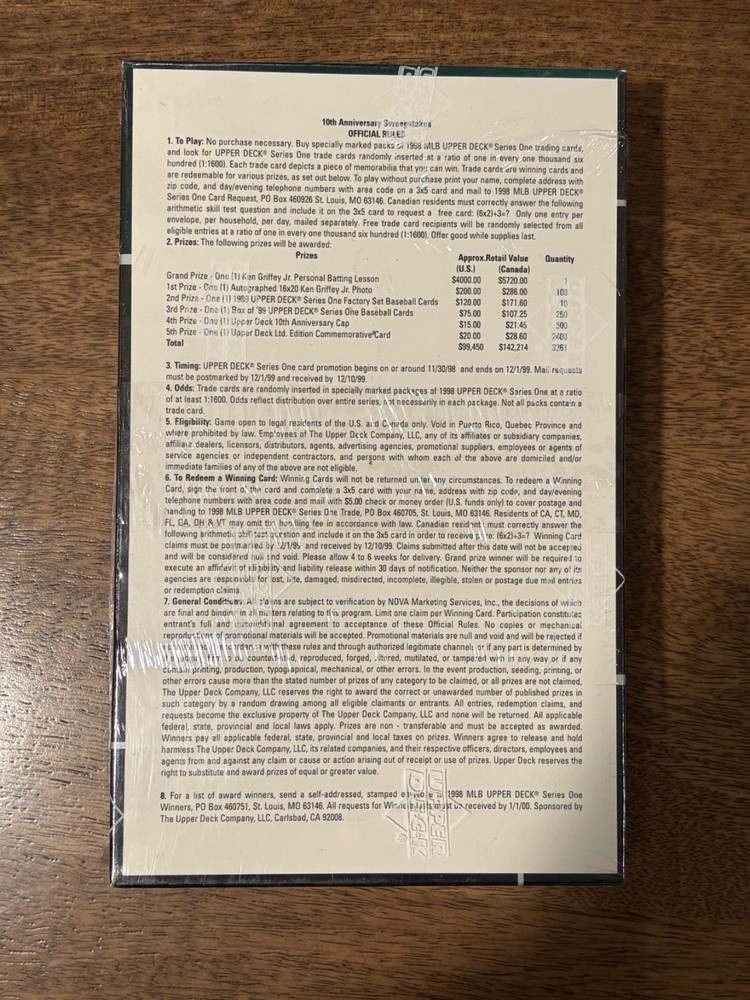 Material: Card Stock Autographed: No League: Boxing Country of Origin: United States Card Size: Standard Set: 1999 Upper Deck Season: 1999 Number of Boxes: 1 Year Manufactured: 1999 Type: Sports Trading Card Autograph Authentication: Upper Deck Sport: Baseball Language: English Manufacturer: Upper Deck Configuration: Box