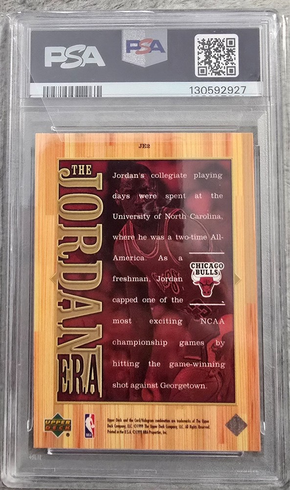 About Me Other Listings Feedback Add to Favorites Contact Me eBay Store DJ Chino Sports 1999-00 Upper Deck The Jordan Era Michael Jordan Chicago Bulls #JE2 No stock photo / These are real scans or pictures Details Description: Michael Jordan Category: Basketball Year: 1999 Product: Upper Deck Michael Jordan Athlete of the Century The Era Set: . Team: Chicago Bulls Card Number: JE2 Dimensions: 3½" x 2¾" SKU: BK A0009 R01 A (48) Shipping Shipping - Please see shipping for pricing and details. - Every card (excluding graded cards) will be shipped in a penny sleeve and Card Saver. Some cases in a top loader. - Any damage to your card during shipping, or not received. I will contact eBay to issue a refund. - I honor combined shipping and discounted shipping for additional items. For standard cards, $.10 each for additional cards. For more information, please check shipping details. - For Graded Cards, I will be shipping in a standard box and well protected. - PLEASE NOTE: If eBay Standard Shipping is selected. eBay Standard Delivery uses USPS Regular mail. The tracking may be delayed or will say that it has been delivered but not in your mailbox. If the tracking states "Delivered" and you don't receive your card. Please allow 3-5 days to be delivered as it seems like USPS scans as delivered at your local USPS sort facility before being delivered. If you still have not received your card, please file a claim using this link. ebay.com/resolutioncenter Returns and Claims Free returns within 30 days of purchase. About Us Welcome to my store. I have been collecting cards for 30+ years and enjoy collecting. I am starting my store so that I can share my collection to the world. Please check out my other listings and feel free to reach out to me with any questions. Thank you. Cards Information - Cards are scanned and immediately after break. - Please refer to photos for additional details. - Cards are in NMINT or better shape may have lines, smudges, different color, or dust due to the scanner. If you would like more details on this card. Please message me and will be happy to send other photos. - Cards may have minor flaws such as slight corner/edge dings, production printing, surface dimples, etc.. Please message me if you have questions. - All my cards are stored in a cool environment and in card boxes. - With listings that have multiple quantities. I do label condition, and may not be the card you see in the picture. If you would like additional photos, please let me know and will eBay message you photos. Listing By Kronocard trading cards software v2.9.0.0