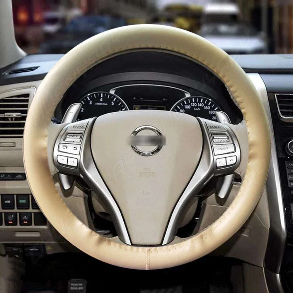 If the product is not suitable or there is a quality problem, please contact our customer service directly to solve the problem. We will give you a satisfactory solution. Brand New and Never been Used Color: Fashion Beige with Needle Elegance and Luxury Design, Fashion and Practical Combination Top Quality Soft Touch Leather, add Comfort, Safty and Protection for your Journey Ergonomic Design Provides Excellent Grip, Skidproof with Tyre Pattern and dotted Design Comfortable Hand Feel, massage your Palm to Relieve Drive Fatigue, Suitable for all Season Easy to Install Description: Steering Wheel Outer Diameter: 37-38cm(14.5"-15") cover size: 38cm(L) x 10.5cm(W) Compatible:Almost 90% car models with 37-38CM outside diameter steering wheel Item included: Steering wheel cover *1 Thread and needle tool set *1 Color: Beige Condition: 100% new (The picture and the actual product have some color difference, the actual color shall prevail in kind) Features: 1.Sewing it by yourself with thread and needle,enjoy DIY pleasure! 2.Provide extra comfortable feeling all round steering wheel. 3.Offer unique decoration for your car 4.No unpleasant smell. 5.No quarantine/customs problem. The package has: 1 leather steering wheel cover 2 needles 2 ties On Jan 23, 2025 at 00:43:28 PST, seller added the following information: